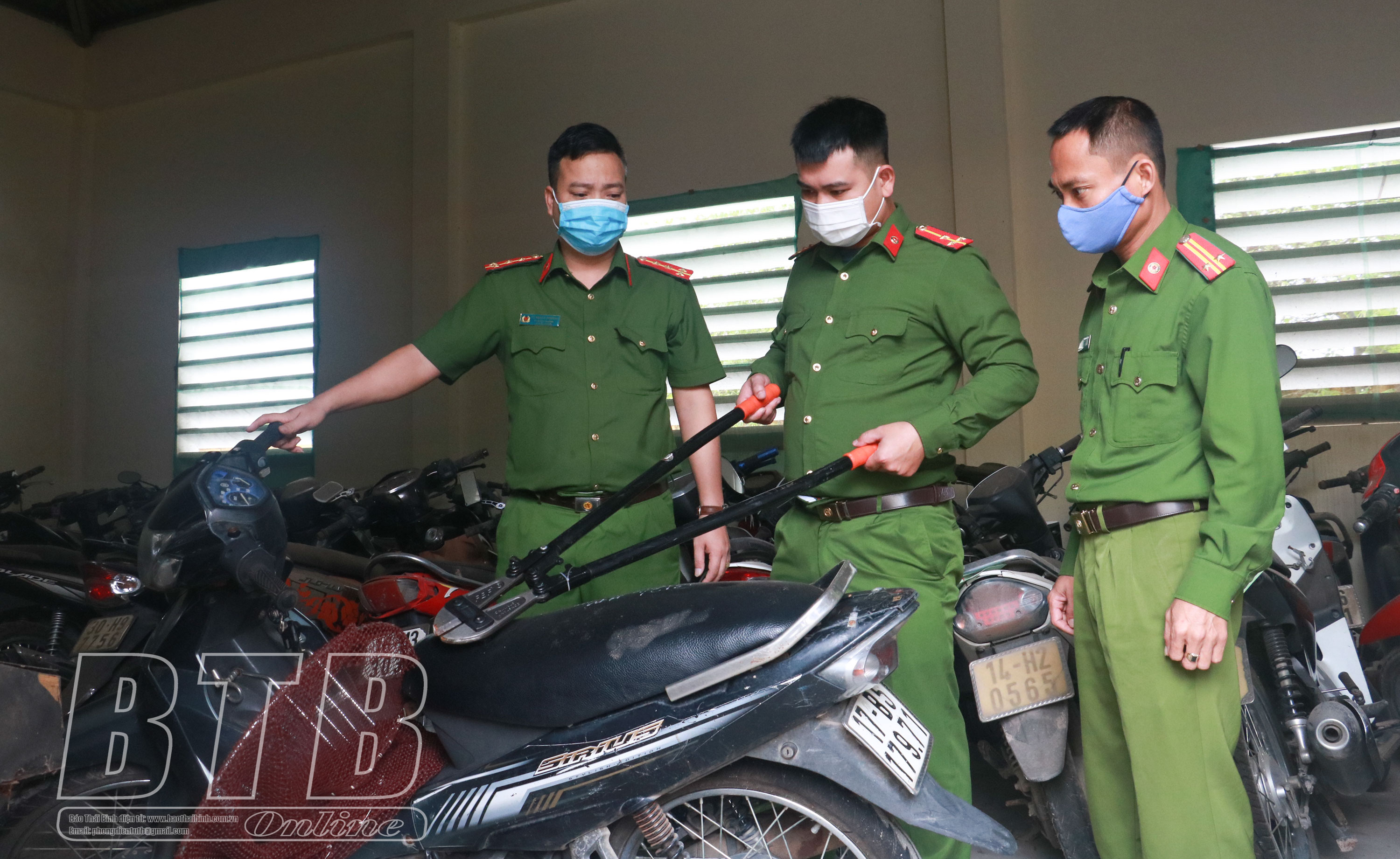 Công an huyện Quỳnh Phụ kiểm tra tang vật một vụ án trộm cắp.
