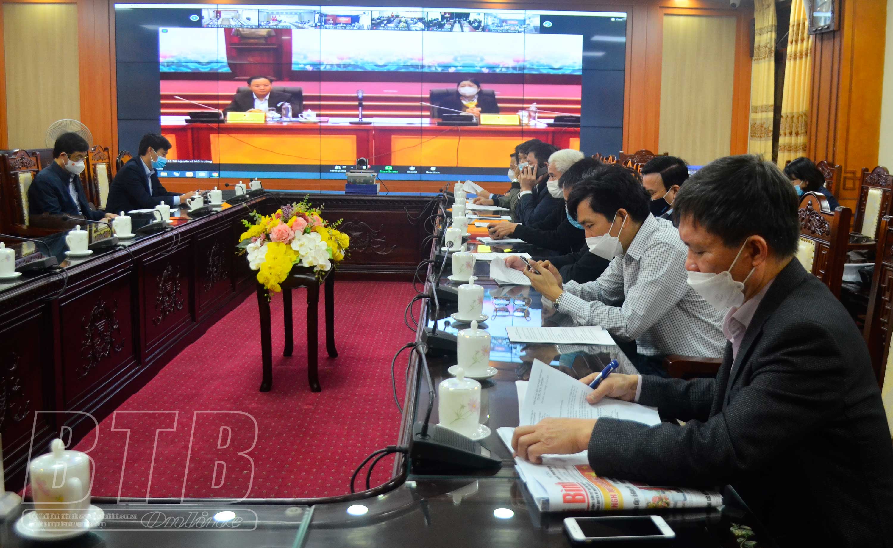 Đồng chí Nguyễn Quang Hưng, Ủy viên Ban Thường vụ Tỉnh ủy, Phó Chủ tịch thường trực UBND tỉnh dự tại điểm cầu Thái Bình.