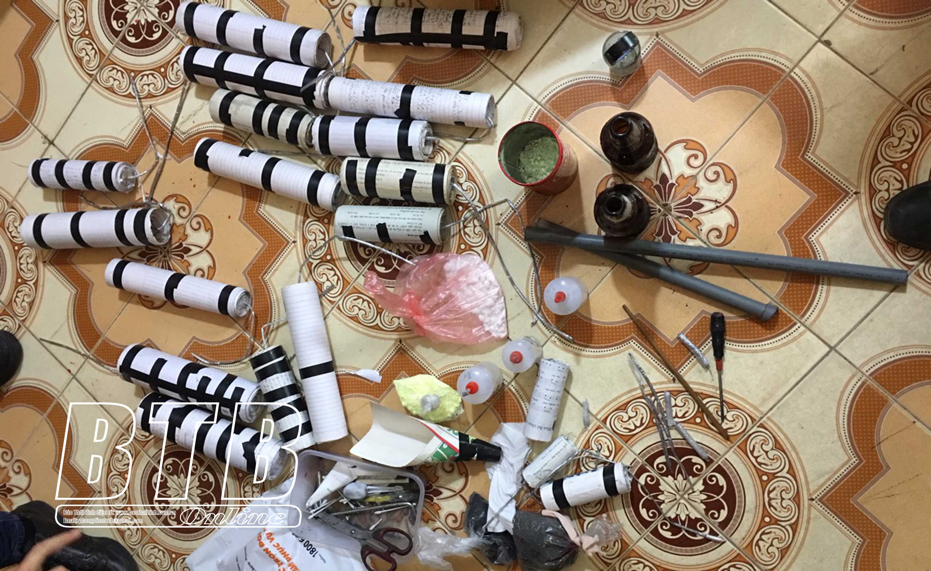 Tại Cơ quan Cảnh sát điều tra Công an huyện Tiền Hải, Nguyễn Văn Thái khai nhận vào khoảng đầu tháng 12/2021, Thái nảy sinh ý định làm pháo nổ để dùng vào dịp tết Nguyên đán 2022. Để biết cách chế tạo pháo nổ, Thái đã xem trên ứng dụng Youtube và đặt mua lưu huỳnh và Kali Clorat trên ứng dụng điện thoại di động; sau đó Thái đã chế tạo và đốt thử 5 quả pháo tại nhà nhóm bạn của mình. Khám xét chỗ ở của Nguyễn Văn Thái, lực lượng công an thu giữ 19 quả pháo nổ trọng lượng 6,743 kg và 0,266 kg thuốc pháo.