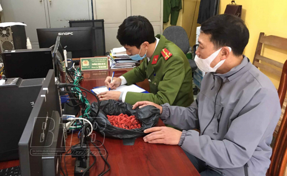 Công an xã Minh Tân lập biên bản thu hồi pháo do người dân tự giác giao nộp.