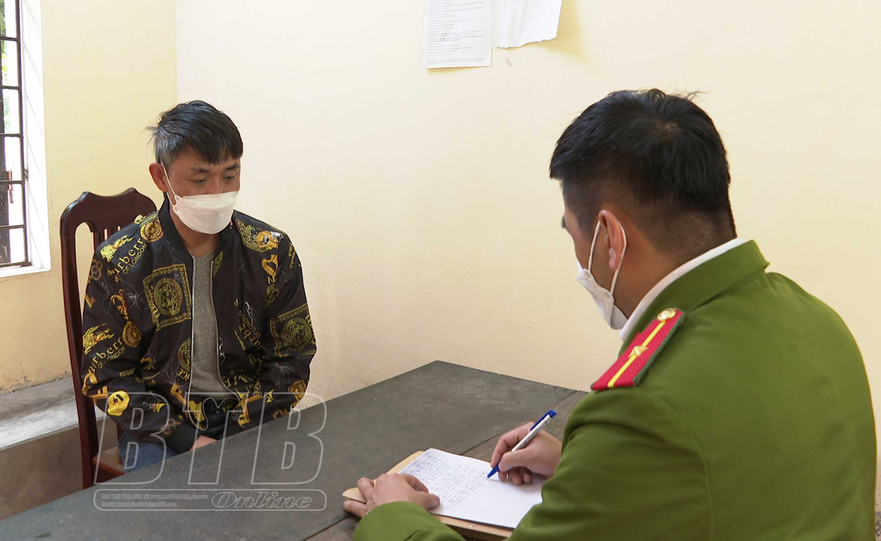 Trước đó, Cơ quan Cảnh sát điều tra Công an huyện Vũ Thư nhận được đơn trình báo về việc bị hại nhận được cuộc điện thoại của một người đàn ông tự giới thiệu là cán bộ Công an tỉnh Thái Bình, thông báo về việc đang điều tra vụ án có liên quan đến tài khoản ngân hàng của nạn nhân, yêu cầu nạn nhân chuyển tiền để điều tra xác minh, đồng thời đe dọa nạn nhân nếu không thực hiện theo yêu cầu trên sẽ tiến hành bắt tạm giam 2 tháng để phục vụ công tác điều tra. Trước lời đe dọa của đối tượng, nạn nhân đã chuyển toàn bộ số tiền mình hiện có trong sổ tiết kiệm là 241.759.000 đồng cho đối tượng. Sau khi người bị hại chuyển tiền, các đối tượng đã nhanh chóng rút tiền để chiếm đoạt.