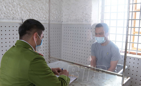 Đối tượng Dương Quang Hưng tại Cơ quan Cảnh sát điều tra.