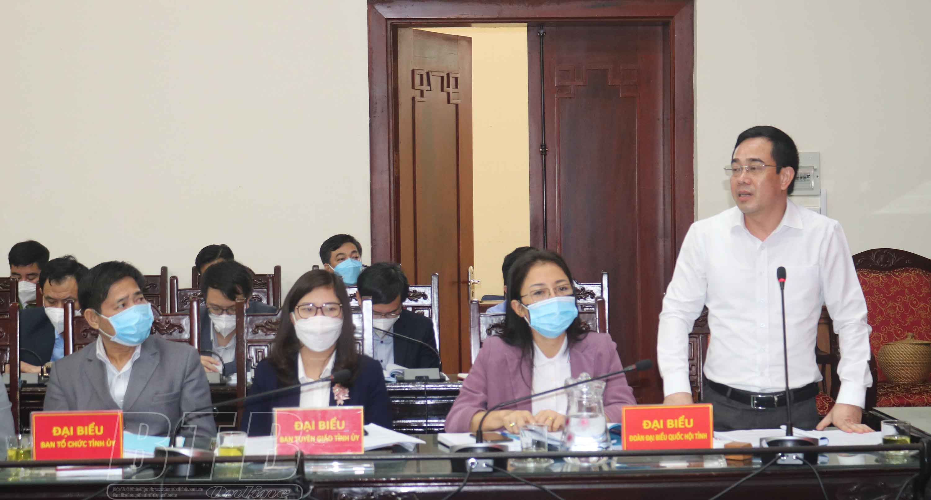 Đồng chí Nguyễn Văn Huy, Tỉnh ủy viên, Phó Trưởng đoàn đại biểu Quốc hội chuyên trách tỉnh phát biểu tại hội thảo.