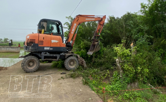 UBND huyện Vũ Thư tổ chức di dời cây trồng, giải phóng mặt bằng, thu hồi đất của 1 hộ dân tại thôn Thượng Điền, xã Tam Quang.