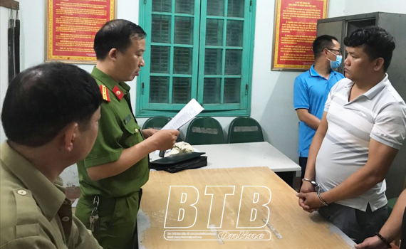 Cơ quan Cảnh sát điều tra, Công an tỉnh đọc lệnh bắt giữ đối tượng Phạm Minh Cường. Ảnh: Công an Thái Bình