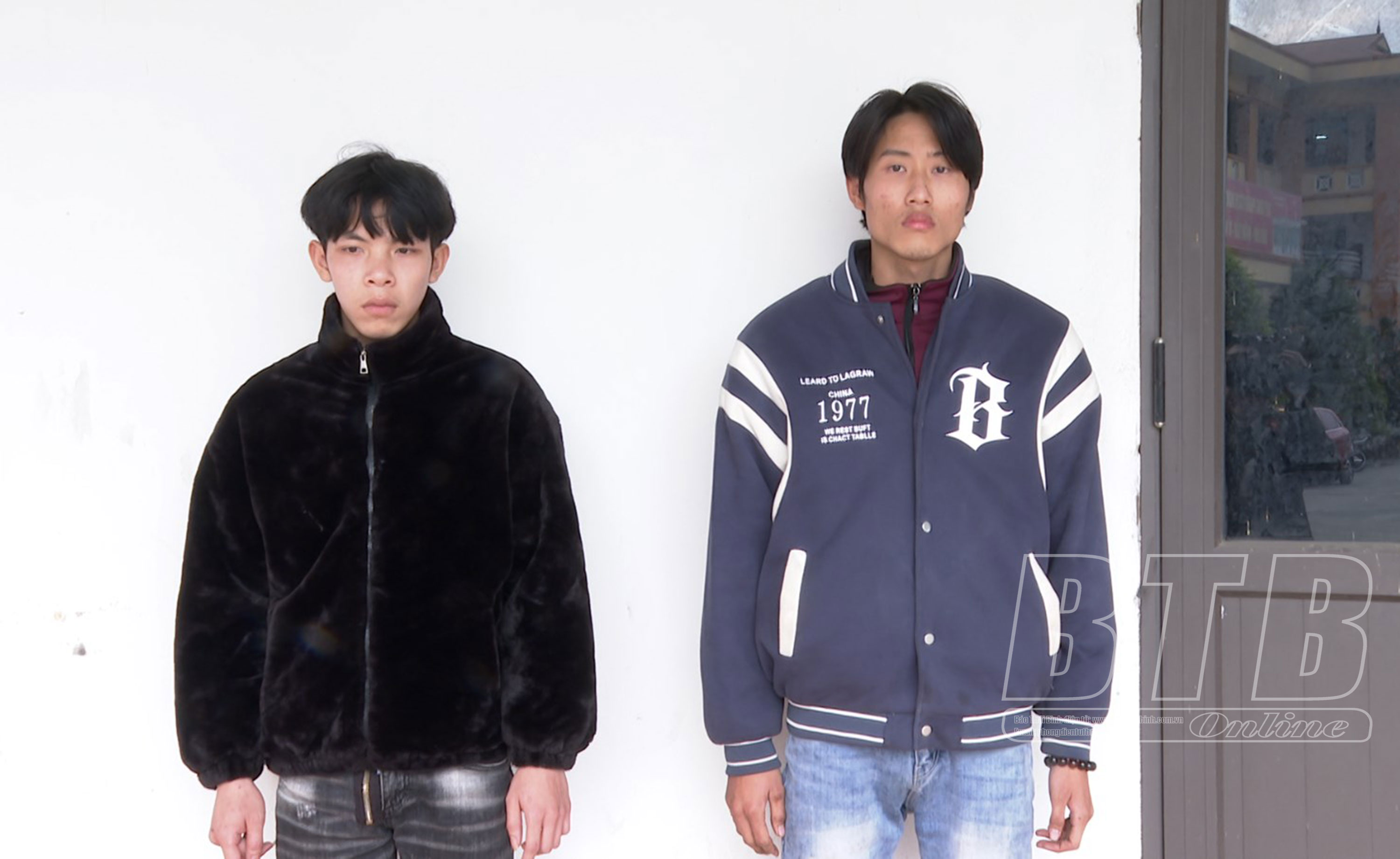 Đối tượng Nguyễn Thành Anh Tú và Lê Văn Thương trước Cơ quan điều tra.