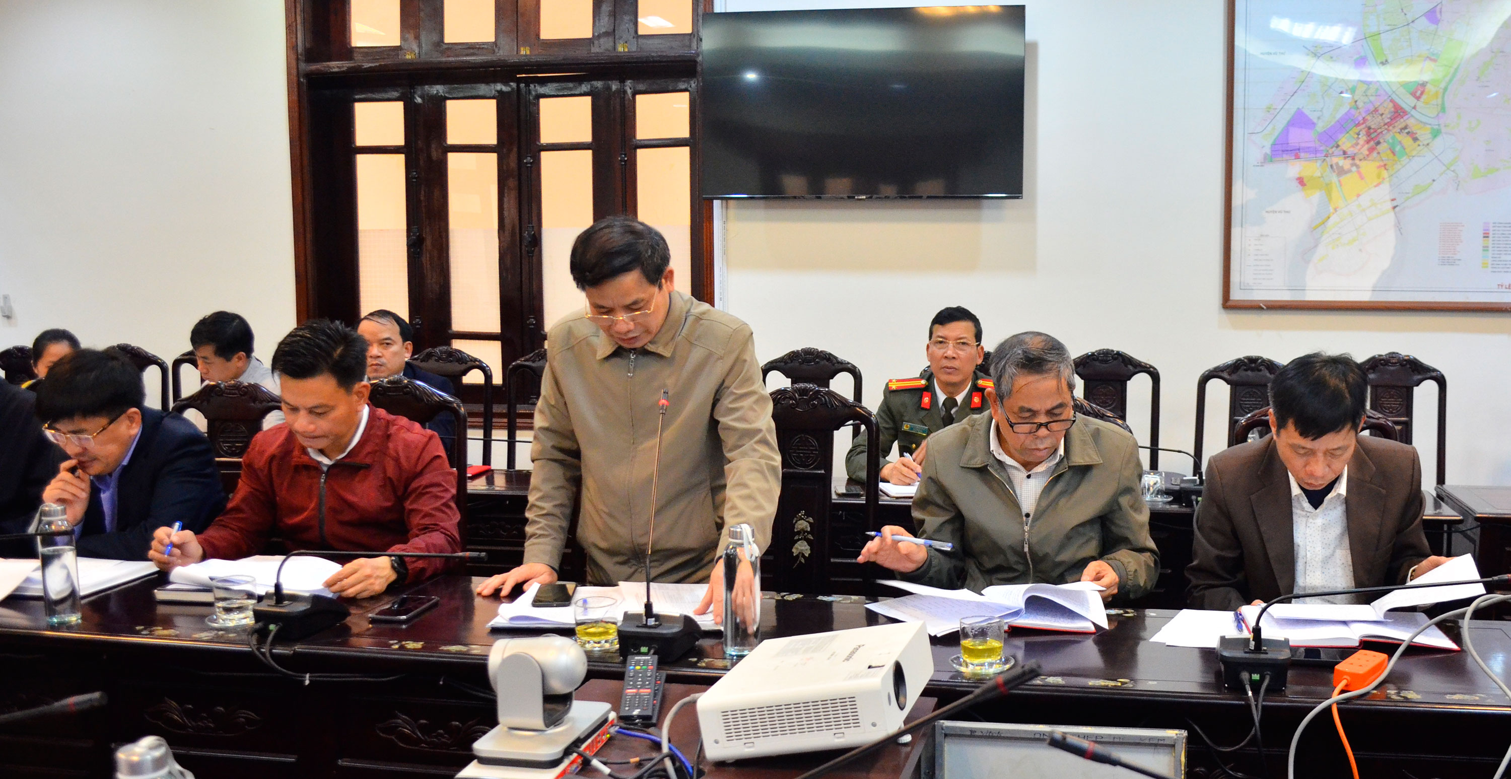 Lãnh đạo xã Phú Xuân phát biểu tại cuộc họp.