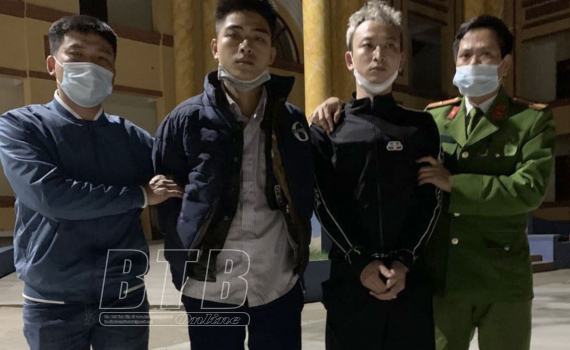 Công an xã Quỳnh Hưng (Quỳnh Phụ) bắt giữ đối tượng Biện và Tuyển về tội mua bán trái phép chất ma túy.