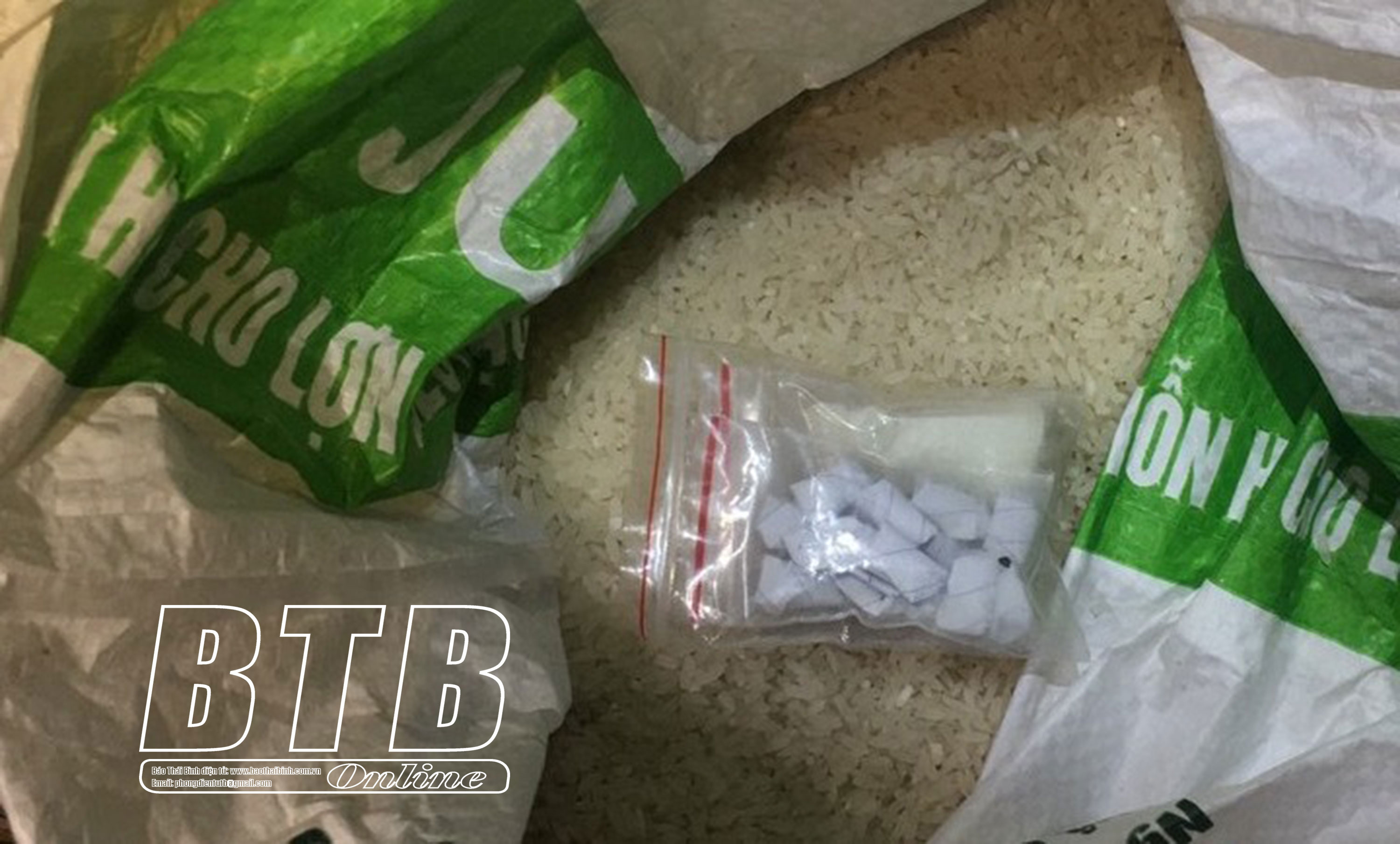 Tang vật vụ án được tìm thấy trong bao gạo.