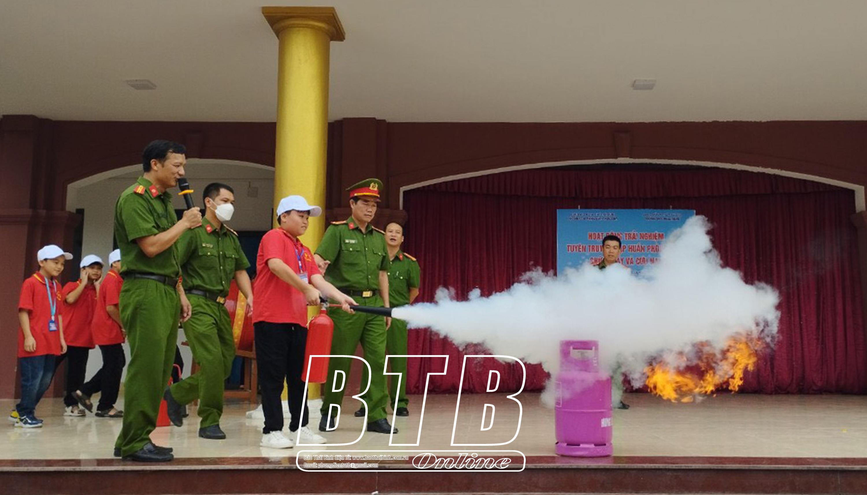 Tại buổi tuyên truyền, cán bộ, giáo viên, nhân viên, học sinh nhà trường cũng được tìm hiểu cách sử dụng một số phương tiện chữa cháy tại chỗ như bình chữa cháy xách tay, chăn chữa cháy, vòi chữa cháy… và được trực tiếp sử dụng bình chữa cháy để dập tắt bình gas đang bị cháy.