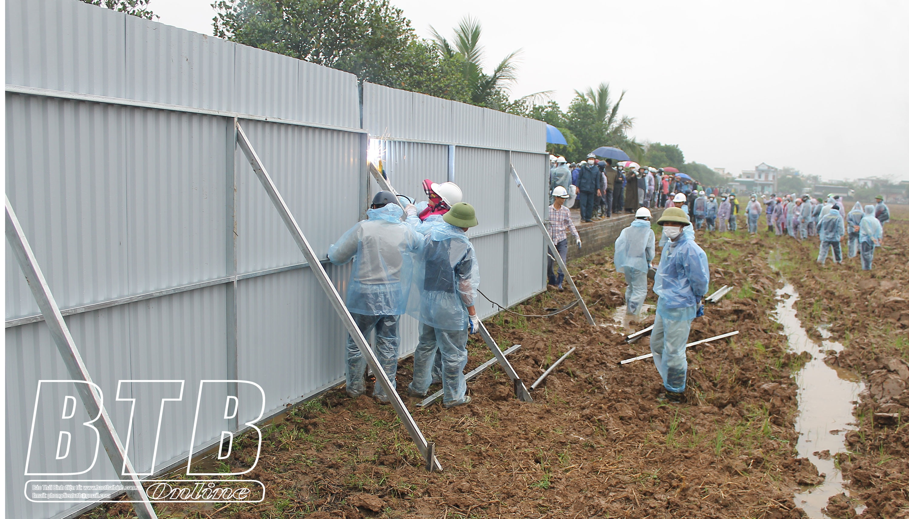 Trong 2 ngày 11 và 12/1, Công ty Cổ phần Xuân Trường Phát tiến hành thi công, thiết lập hàng rào bao quanh khu vực gần 64.000m2 đất thuộc dự án đã được bàn giao. UBND huyện Vũ Thư huy động lực lượng an ninh tiến hành bảo vệ thi công dự án an toàn, đúng quy định của pháp luật.