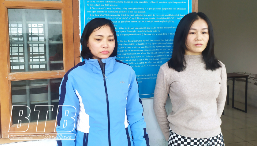 Đối tượng Lê Thị Mùi và Nguyễn Thị Ngọc Minh tại Cơ quan điều tra.
