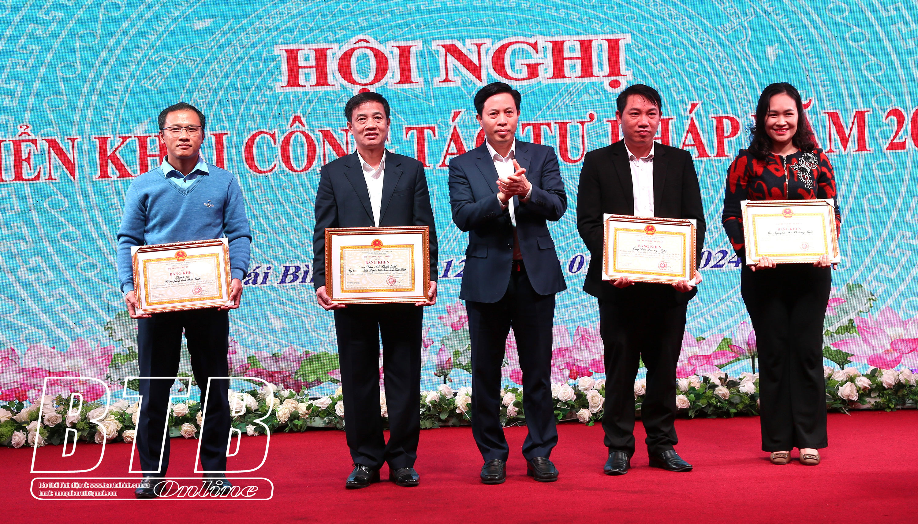 Đồng chí Lại Văn Hoàn, Tỉnh ủy viên, Phó Chủ tịch UBND tỉnh trao bằng khen của Bộ Tư pháp cho các tập thể, cá nhân đạt thành tích trong thực hiện nhiệm vụ.