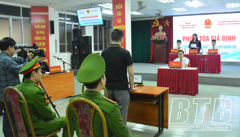 Phiên tòa giả định xét xử sơ thẩm vụ án hình sự về tội trốn tránh nghĩa vụ quân sự.