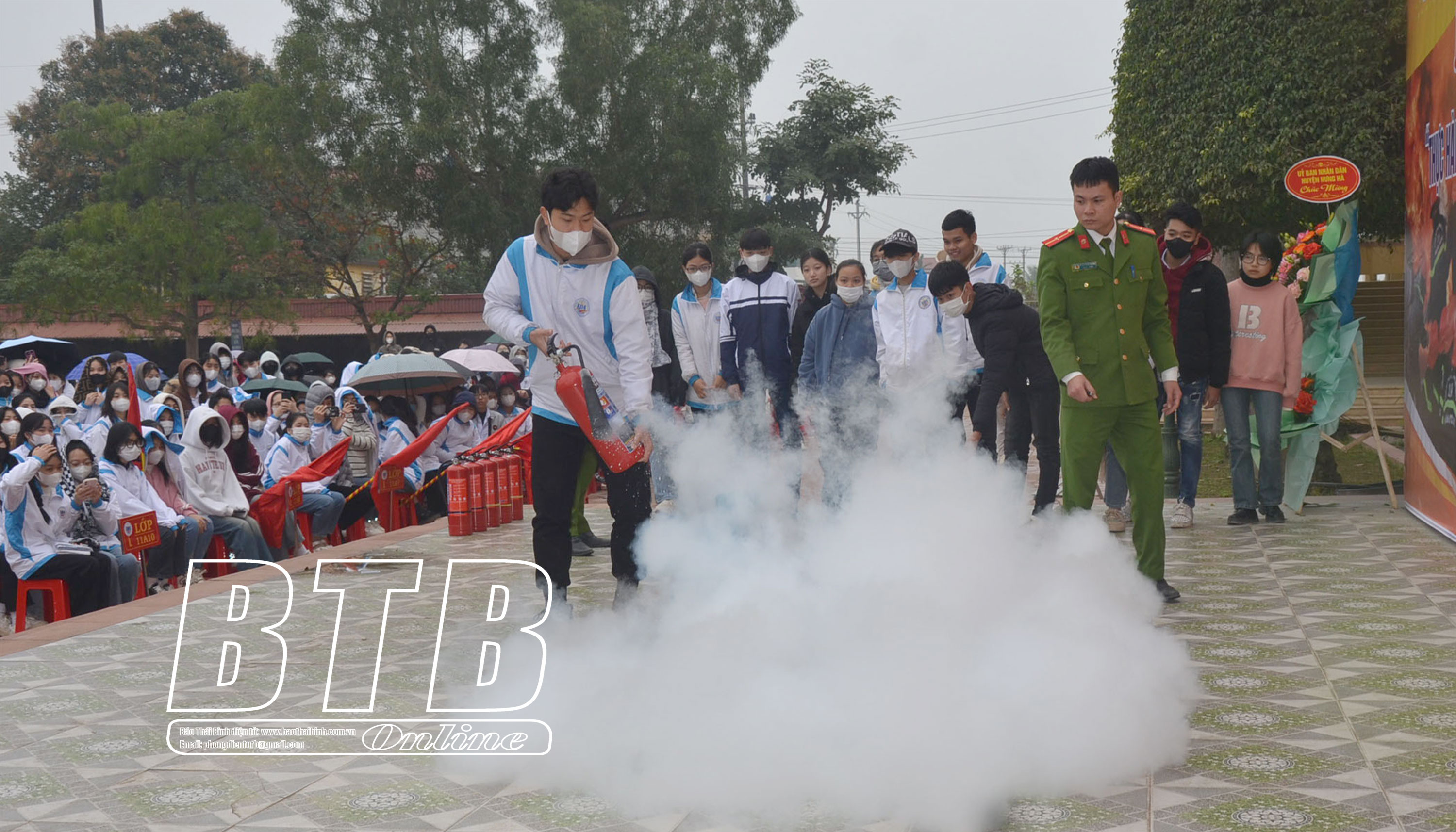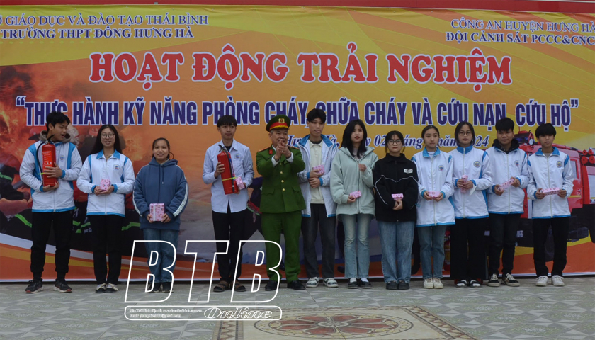 Trường THPT Đông Hưng Hà thực hành kỹ năng phòng cháy, chữa cháy và cứu nạn, cứu hộ