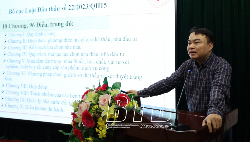 Các đại biểu đã nghe chuyên gia đến từ Trung tâm Đấu thầu qua mạng quốc gia, Cục Quản lý đấu thầu, Bộ Kế hoạch và Đầu tư triển khai các văn bản quy định về đấu thầu mua sắm như: Luật Đấu thầu số 22/2023/QH15; Nghị định số 24/2024/NĐ-CP ngày 27/2/2024 của Chính phủ quy định chi tiết một số điều và biện pháp thi hành Luật Đấu thầu về lựa chọn nhà thầu; Thông tư số 01/2024/TT-BKHĐT ngày 15/2/2024 của Bộ Kế hoạch và Đầu tư hướng dẫn việc cung cấp, đăng tải thông tin về việc lựa chọn nhà thầu và mẫu hồ sơ đấu thầu trên hệ thống qua mạng đấu thầu quốc gia; hướng dẫn việc đấu thầu qua mạng.