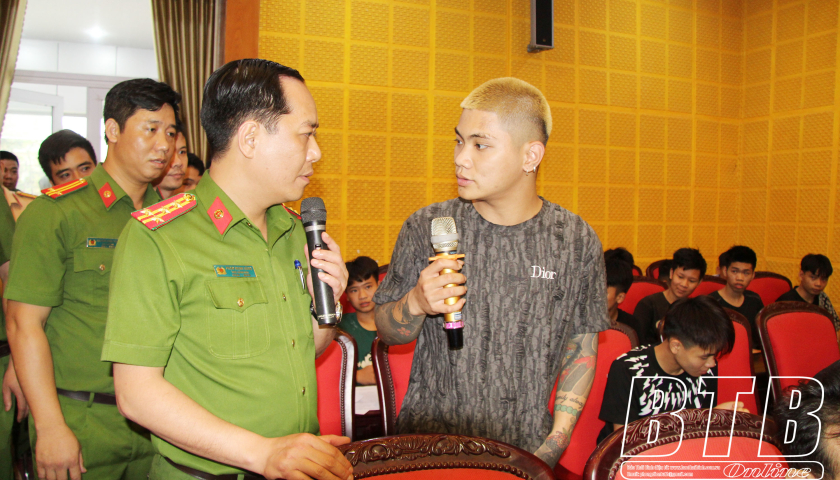 Lãnh đạo Công an tỉnh đối thoại trực tiếp với các thanh thiếu niên.