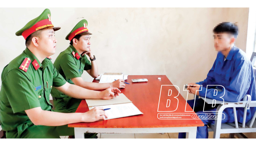 Công an huyện Đông Hưng lấy lời khai của đối tượng Đào Trọng May