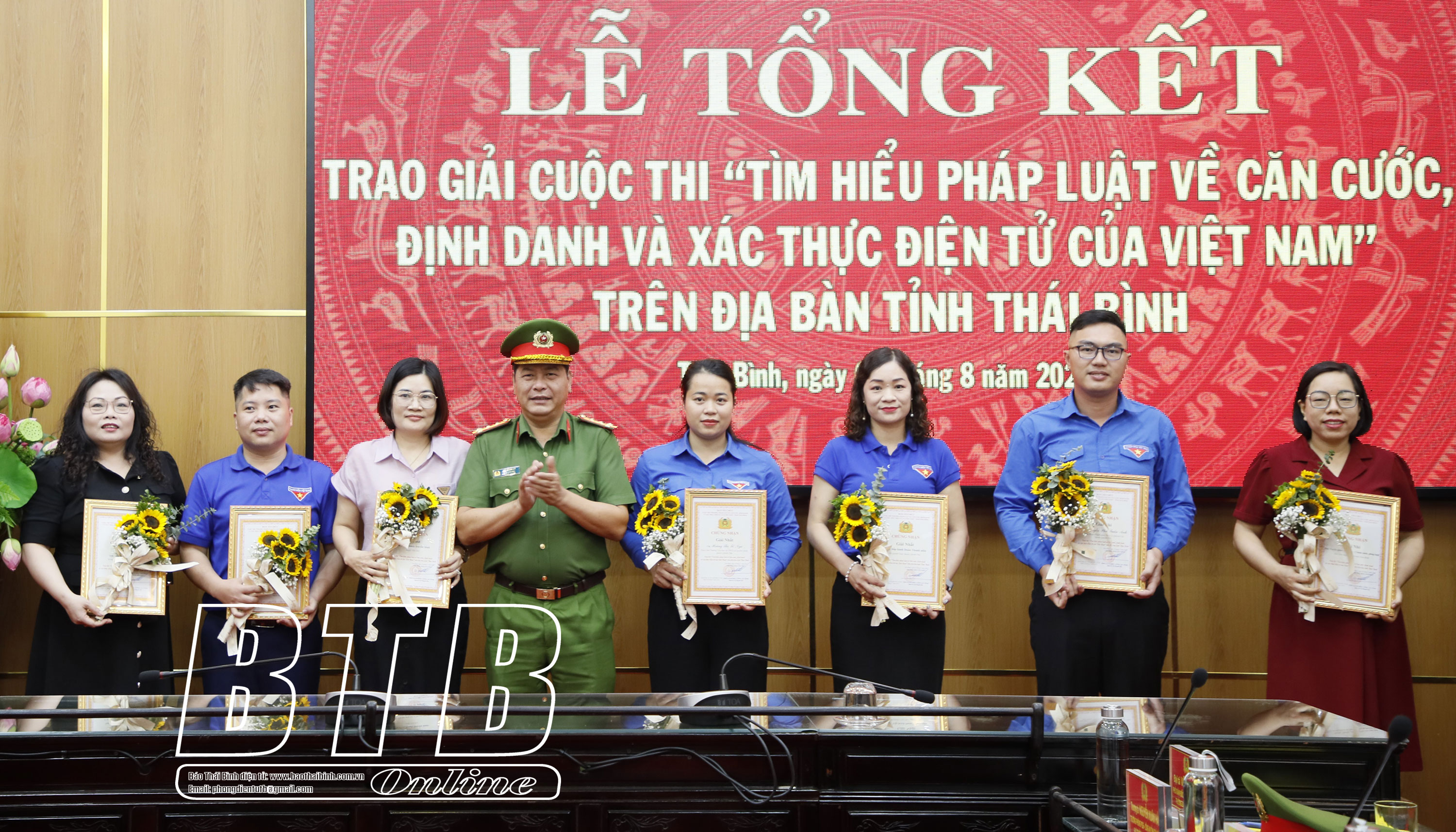 Ban Giám khảo đã tiến hành chấm thi, lựa chọn 12 bài dự thi của 3 tập thể và 9 cá nhân để trao giải. Trong đó, giải Nhất tập thể thuộc về Đoàn Thanh niên xã Quỳnh Giao (Quỳnh Phụ); giải Nhất cá nhân thuộc về tác giả Hoàng Thị Tố Nga, giáo viên Trường Tiểu học và THCS Quỳnh Minh (Quỳnh Phụ). Sau khi trao giải, Công an tỉnh sẽ lựa chọn các bài xuất sắc nhất để tham dự cuộc thi do Bộ Công an tổ chức.