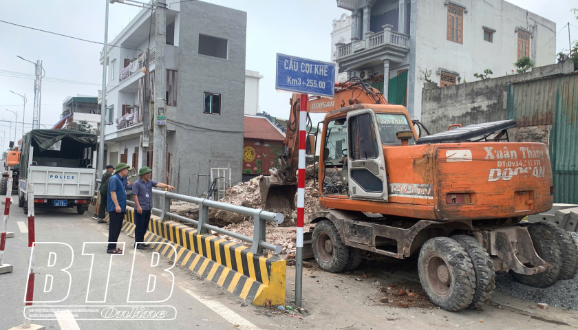 Việc cưỡng chế thu hồi đất nhằm giải phóng mặt bằng để thi công rãnh thoát nước cạnh mố cầu Cọi Khê.