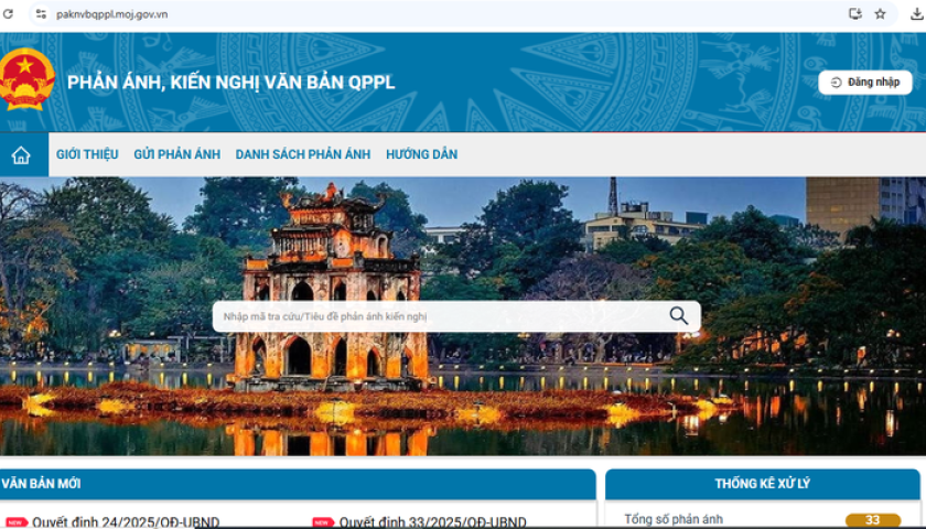 Thực hiện Quyết định số 244/QĐ-TTg ngày 05/02/2025 của Thủ tướng Chính phủ về việc phê duyệt Đề án "Ứng dụng công nghệ số trong việc tiếp nhận, xử lý phản ánh, kiến nghị về văn bản quy phạm pháp luật", trong thời gian qua, Bộ Tư pháp đã nghiên cứu xây dựng Hệ thống thông tin tiếp nhận, xử lý phản ánh, kiến nghị về văn bản quy phạm pháp luật (Hệ thống thông tin).