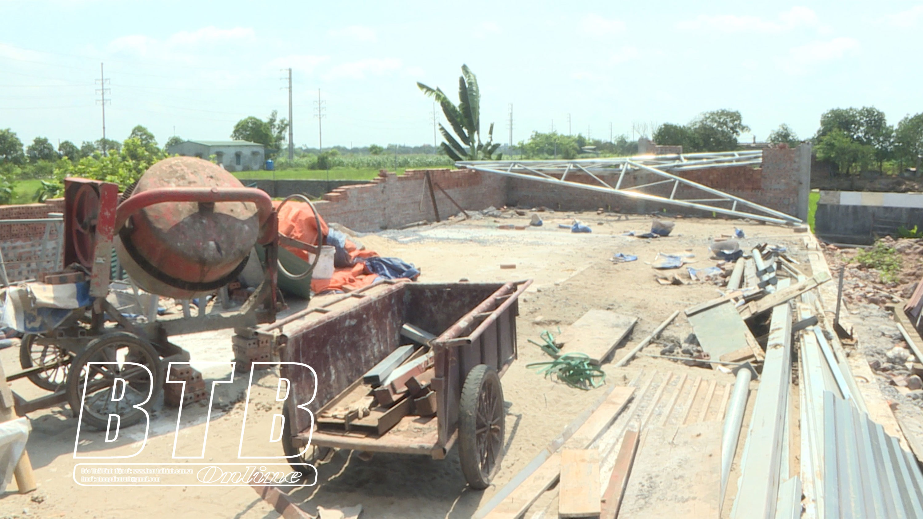 Hiện trường xây dựng công trình trái phép và vi phạm nhiều lần của ông Nguyễn Trọng Cẩm, thôn Phúc Trung Nam, xã Phúc Thành (Vũ Thư).