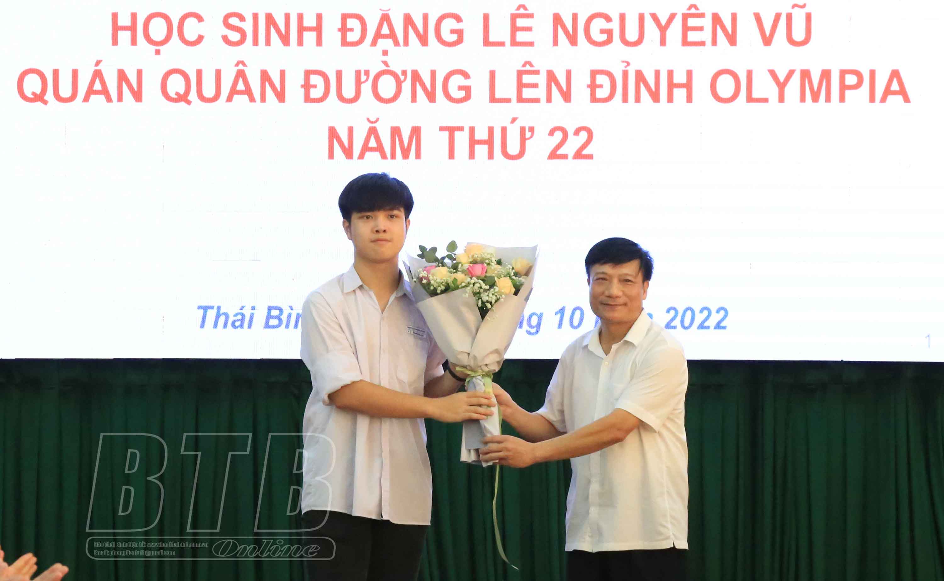 Tại hội nghị, đại diện Ban Giám hiệu Trường THPT Bắc Duyên Hà đã báo cáo thành tích về hành trình chinh phục cuộc thi của học sinh Đặng Lê Nguyên Vũ từ vòng thi tuần, tháng, quý và đặc biệt là cuộc thi chung kết lần thứ 22. Với 205 điểm, Nguyên Vũ đã xuất sắc trở thành quán quân cuộc thi năm nay.