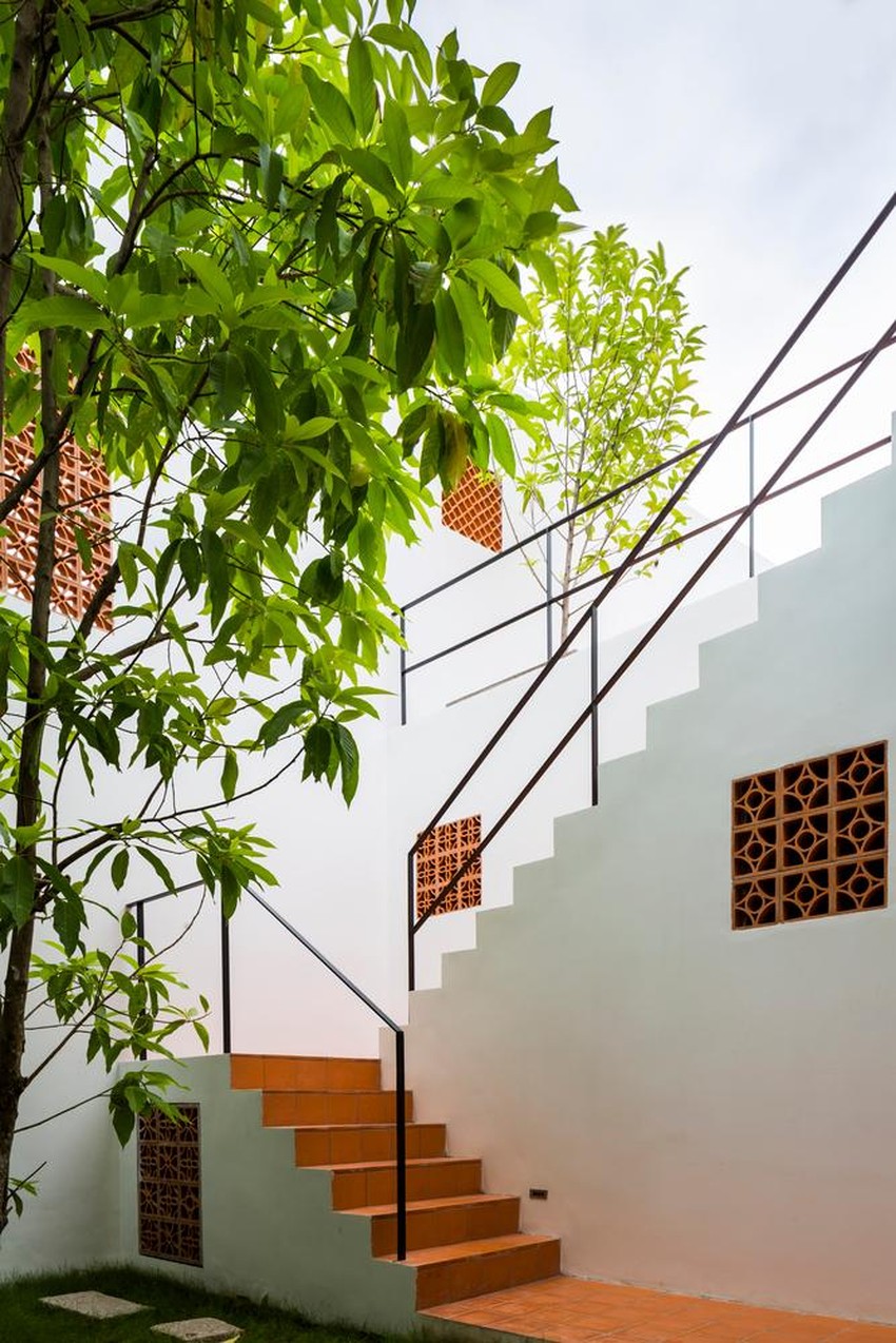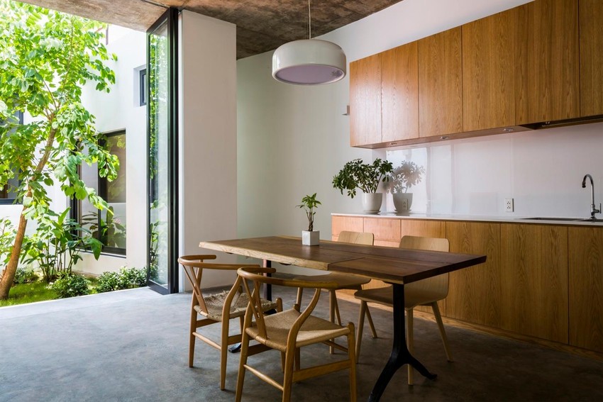 Thông qua đó, tận dụng không gian sân trong và không gian vườn để mang lại sự lưu thông không khí trong lành và ánh sáng ban ngày vào nhà.