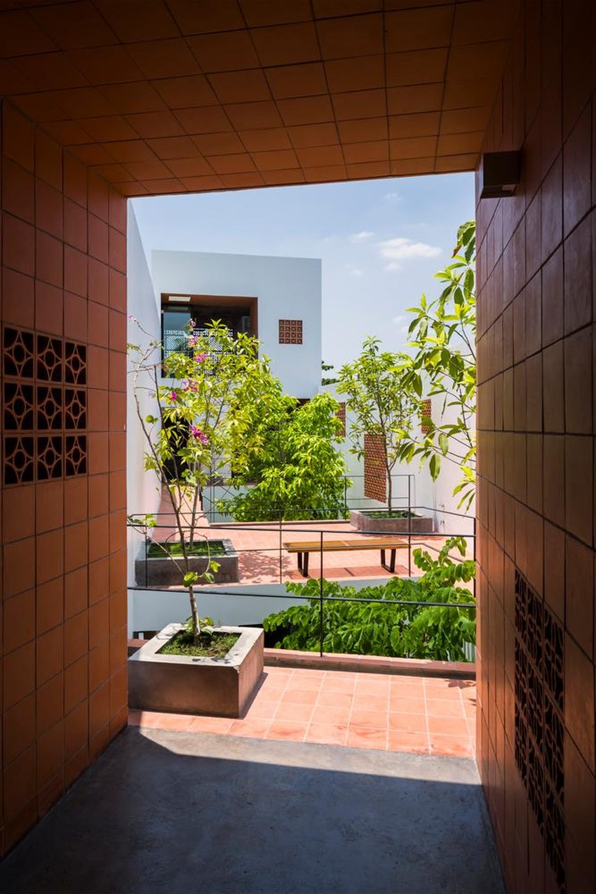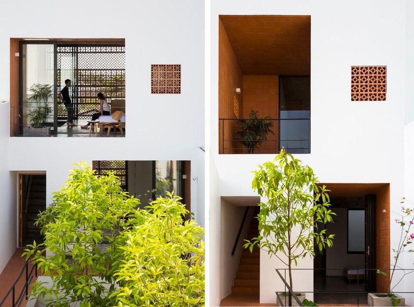 Giữa các căn phòng là khoảng trống lấy sáng và trồng cây xanh.