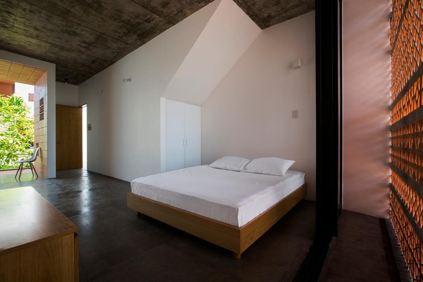 Với vật liệu thô mộc và giải pháp thông minh, kiến trúc sư đã tạo ra không gian sống thông thoáng có kết cấu như tổ mối, đảm bảo nhu cầu sử dụng.
