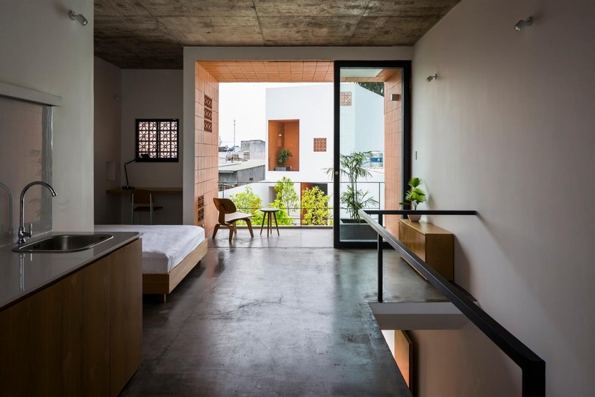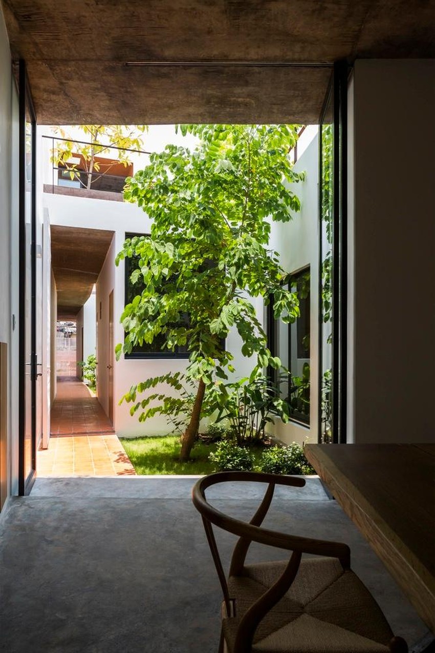 Kiến trúc sư thiết kế không gian bán ngoài trời cho mỗi phòng, tiếp xúc với sân trong.
