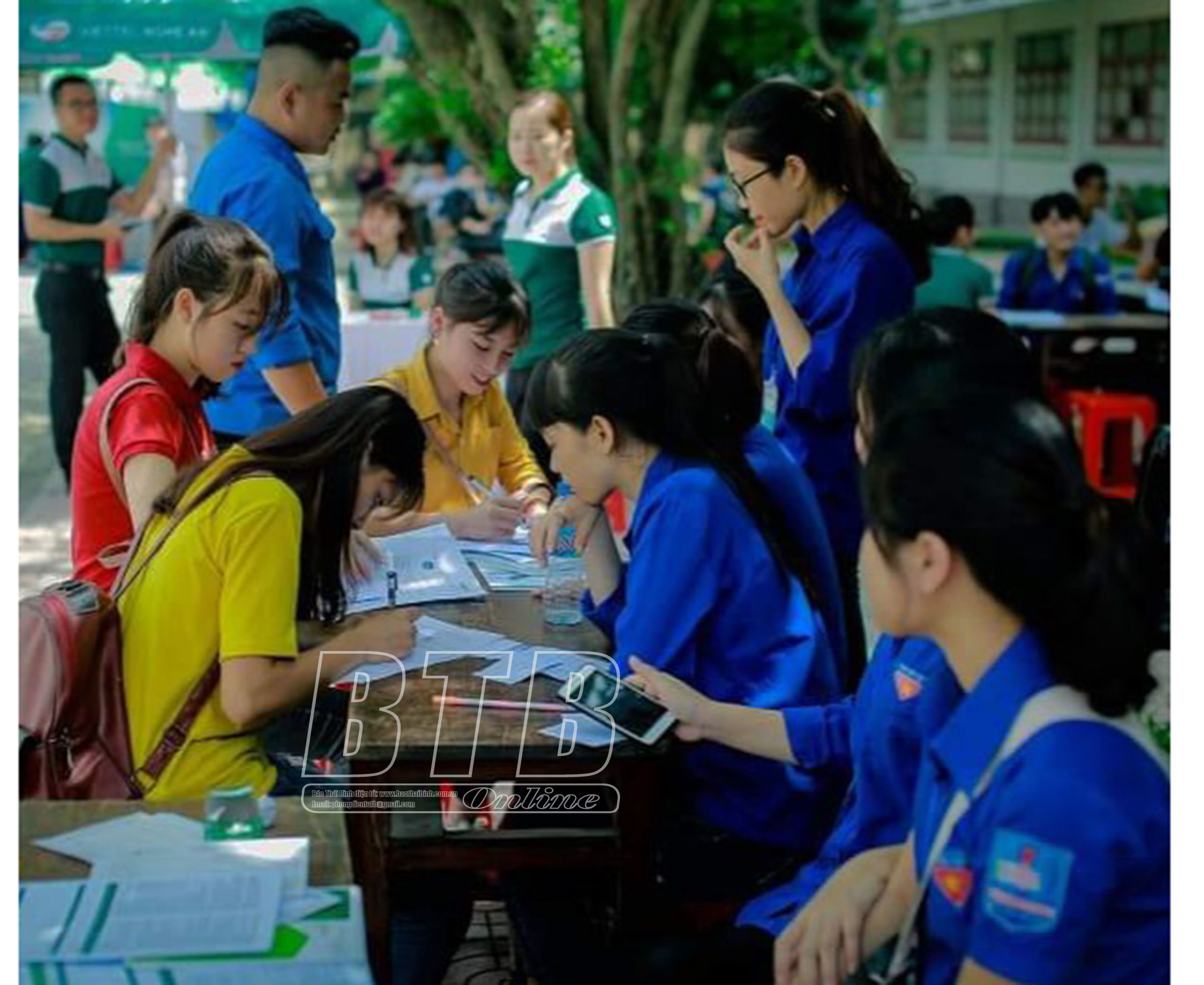 Đoàn viên, thanh niên xã Trọng Quan tham gia tiếp sức mùa thi.