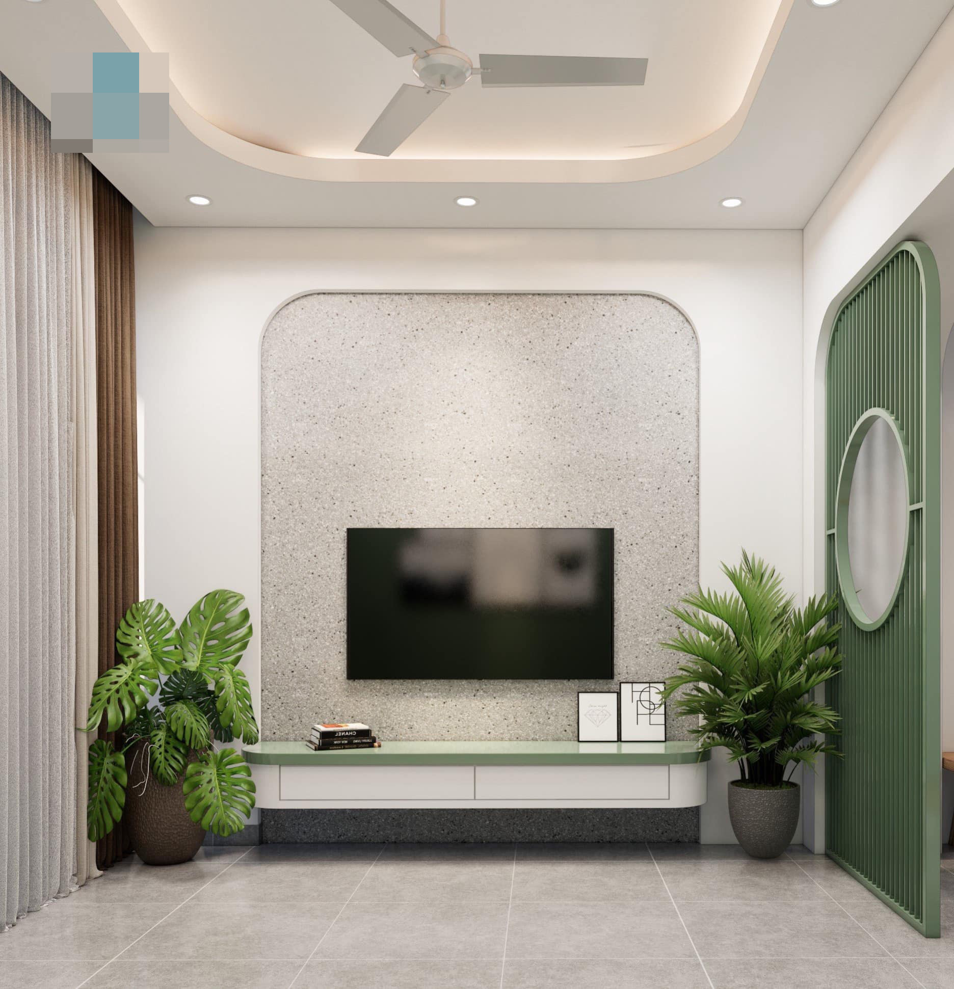 “Thủy house” là công trình nhà phố 2 tầng ở Bình Dương do kiến trúc sư Phan Hiển (Đà Nẵng) cùng cộng sự thiết kế năm 2022. Dự kiến sẽ khởi công trong thời gian tới. Mặt tiền nhà sử dụng những khung cửa bo cong tạo điểm nhấn và sự mềm mại cho công trình. Cửa kính là giải pháp có chi phí rẻ, đảm bảo thẩm mỹ giúp nhà sáng thoáng hơn. Khu vực tường bao ốp đá rối chống rêu mốc, mang một chút hoài cổ.
