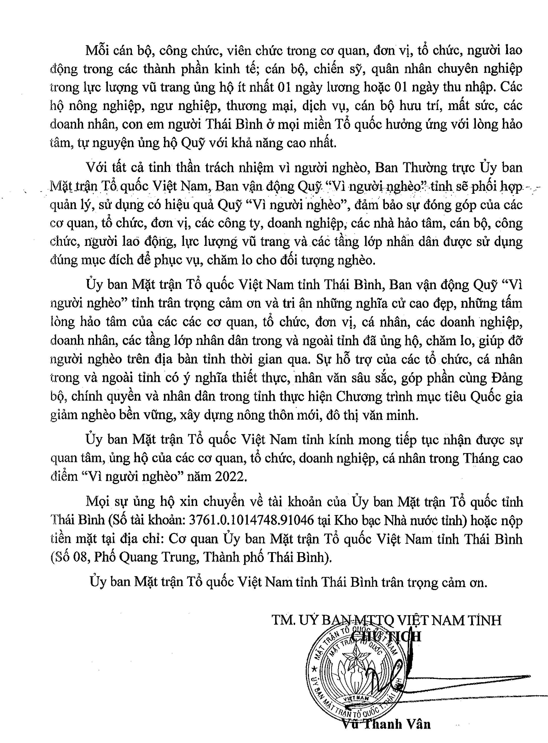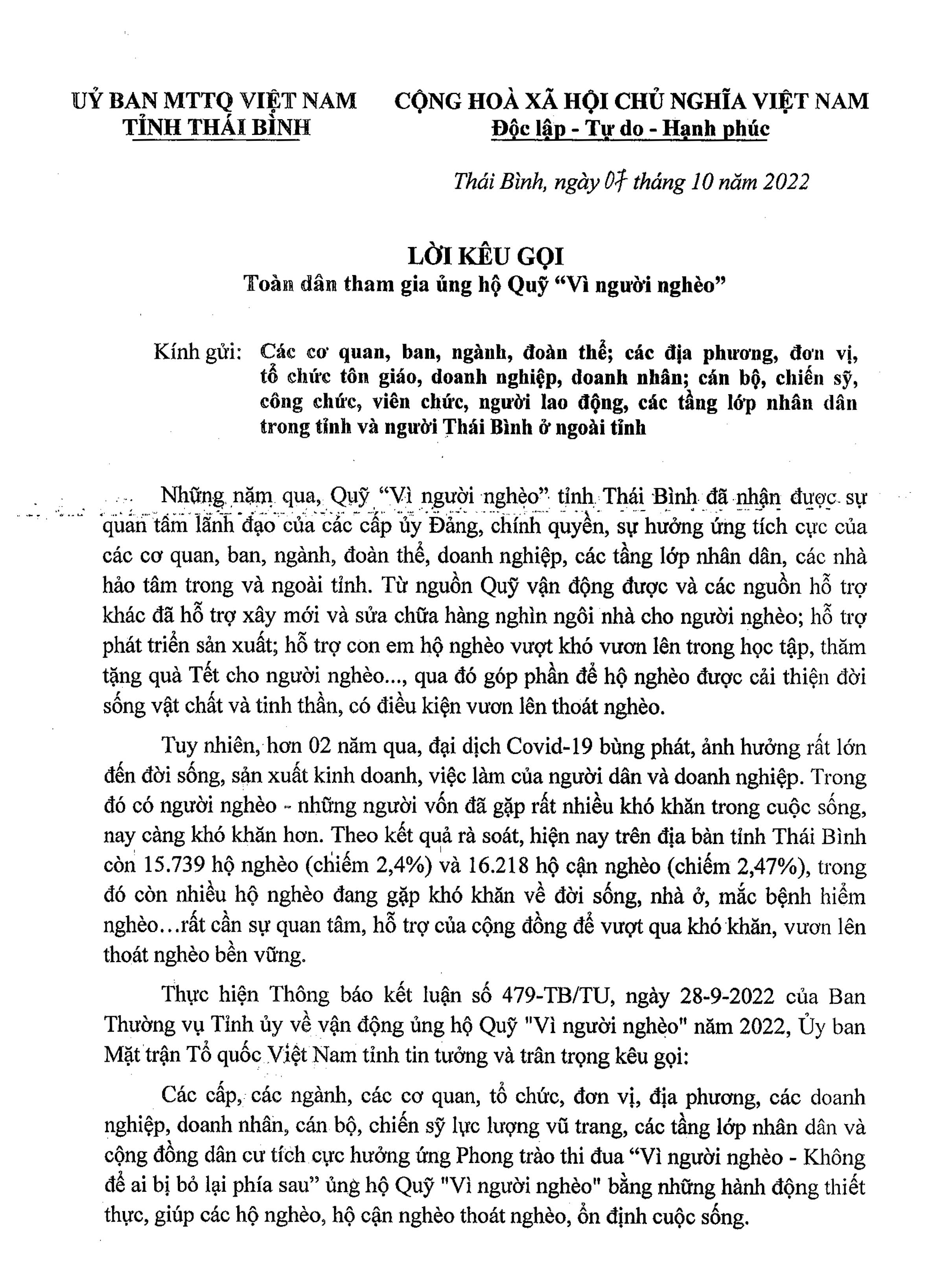 Lời kêu gọi toàn dân tham gia ủng hộ Quỹ "Vì người nghèo"