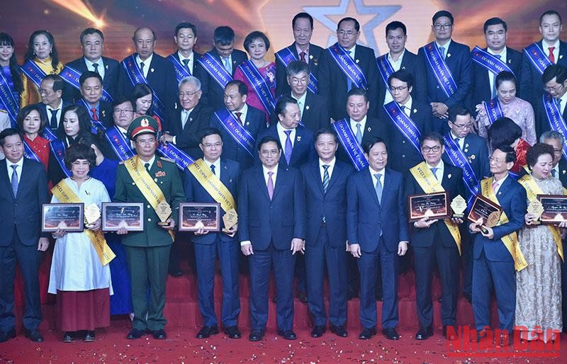 Tại buổi lễ, thay mặt Lãnh đạo Đảng, Nhà nước, Thủ tướng Phạm Minh Chính trao giải TOP 10 Doanh nhân Việt Nam tiêu biểu.