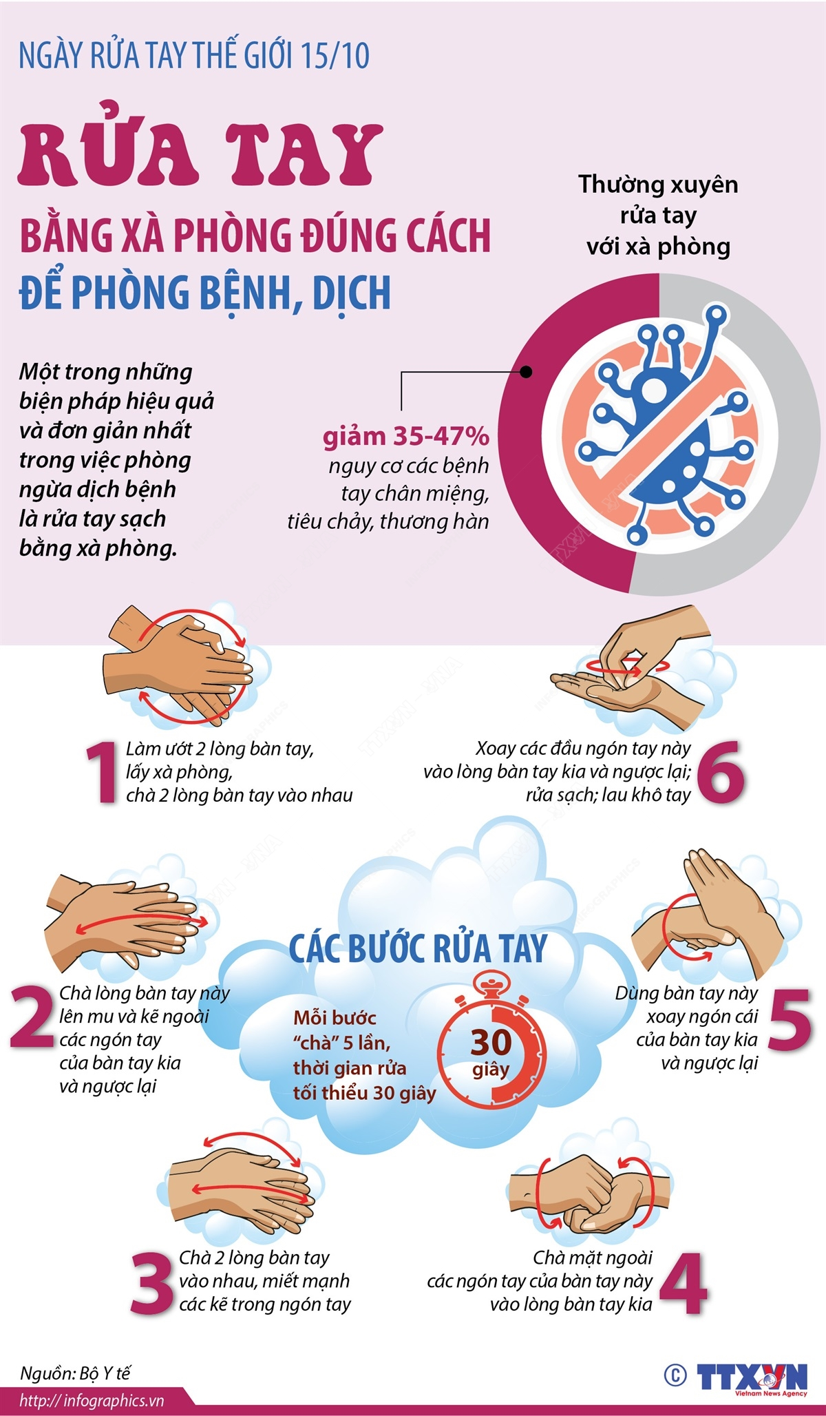 Rửa tay bằng xà phòng đúng cách để phòng bệnh, dịch