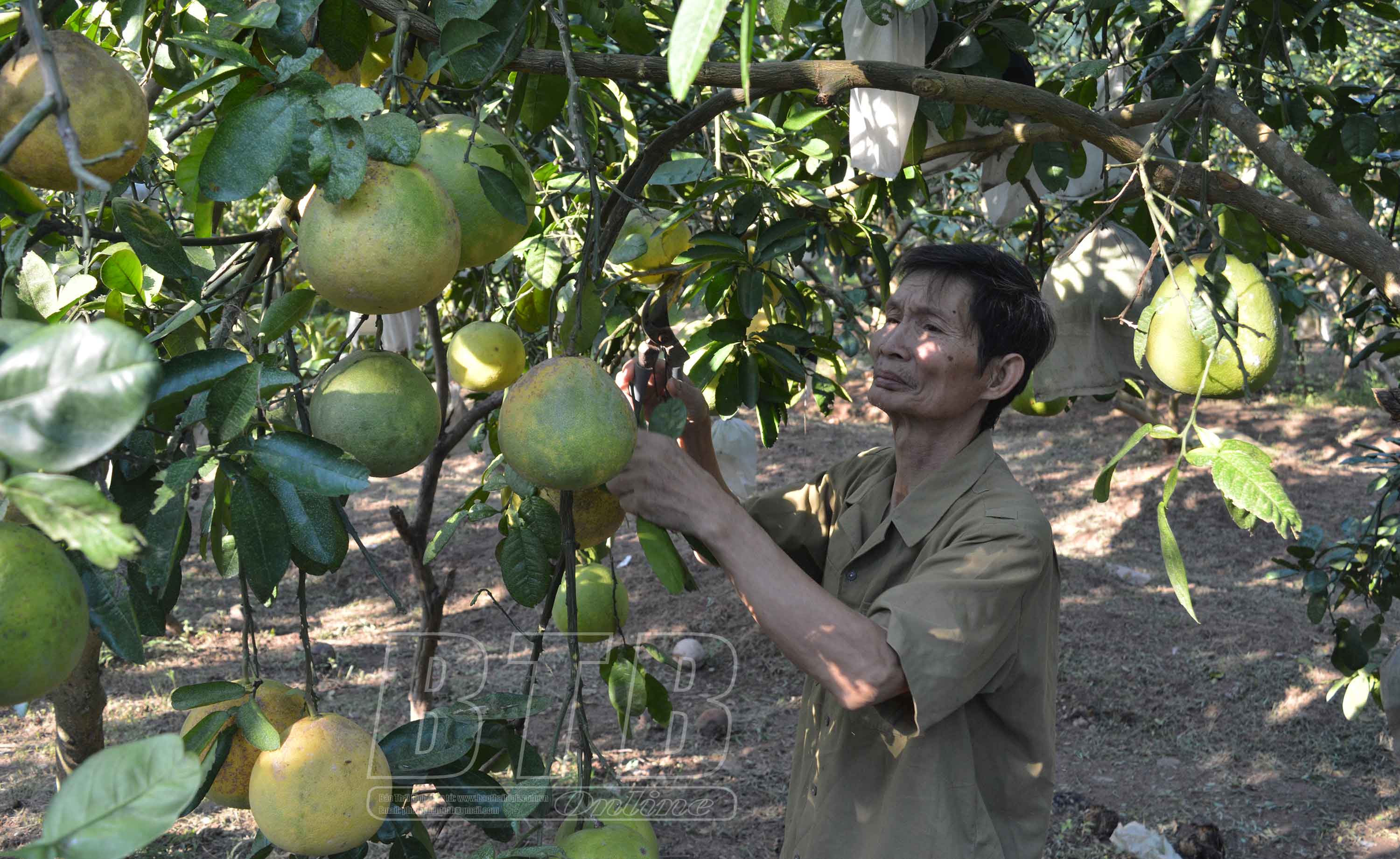 Cựu chiến binh Trần Hữu Khang, thôn Nam Tiến, xã Hồng An, huyện Hưng Hà mỗi năm xuất bán gần 1 vạn quả bưởi cho thu nhập hơn 250 triệu đồng/năm.