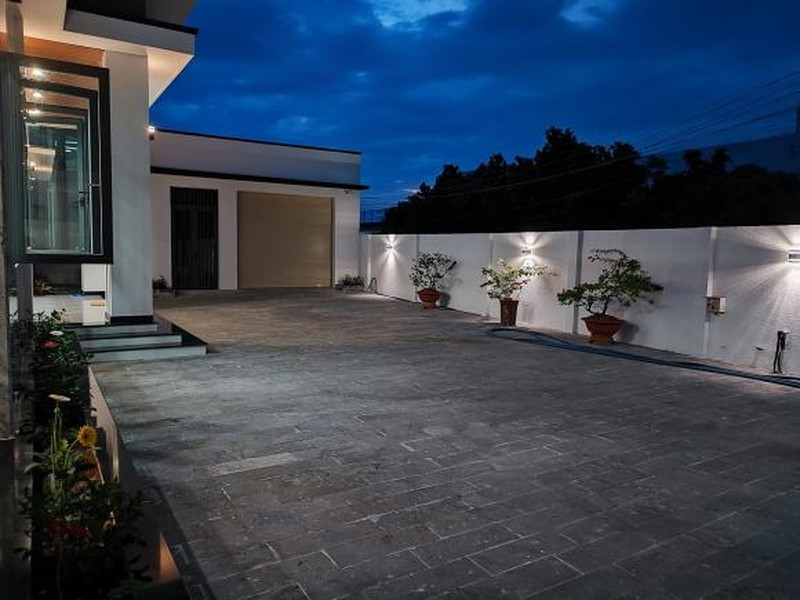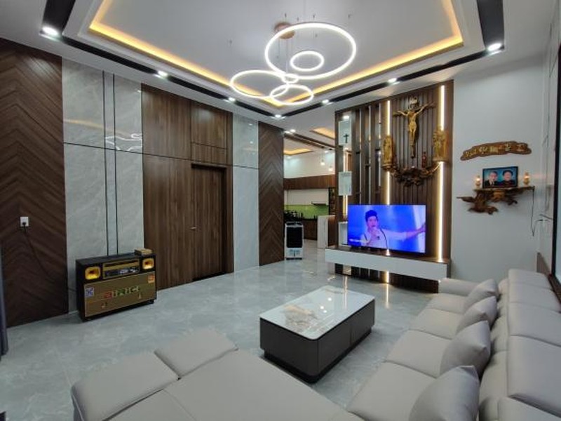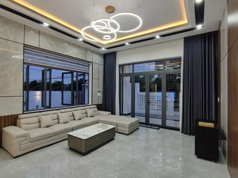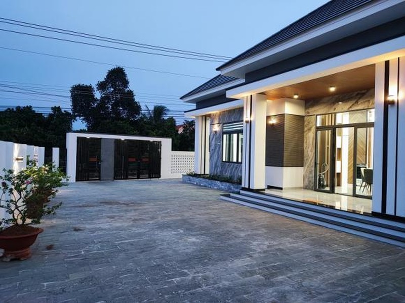 Diện tích căn nhà gần 200m2 trên mảnh đất rộng 500m2. Với công năng sử dụng bào gồm: Phòng khách, khu vực bếp, 4 phòng ngủ, 3 WC và gara để xe.
