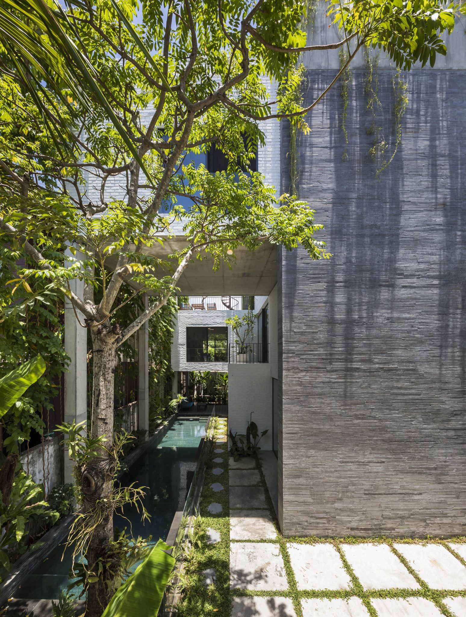 Trong khi đó, "Thắng House" được xây tại Đà Nẵng được giải thưởng Honorable Mention tại hạng mục kiến trúc nhà ở. Mong muốn của chủ nhân là có được một ngôi nhà mang phong cách làng quê, nơi có được không khí trong lành, bao phủ bởi những đồng cỏ và những mảng xanh đậm chất nhiệt đới.