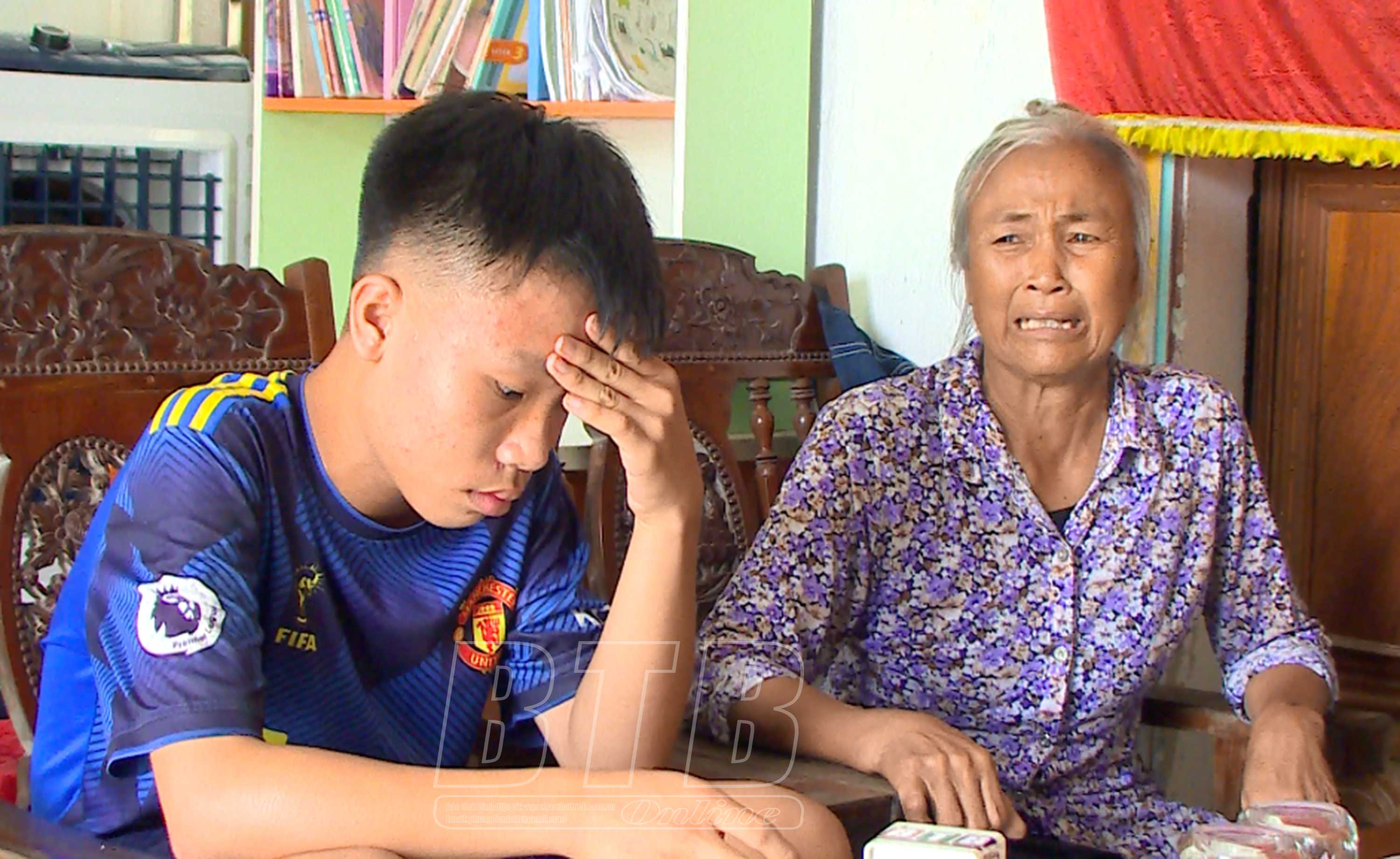 “Sảy cha còn chú, sảy mẹ bú dì” nhưng em Phạm Tấn Phước, thôn Trần Phú, xã Bình Định (Kiến Xương) hơn 5 năm năm nay lại phải nương tựa vào ông bà nội già yếu. Chăm em từ lúc mới lọt lòng, bà Đỗ Thị Sen, bà nội của Phước nghẹn ngào: Do hôn nhân không hạnh phúc nên sinh cháu Phước được vài tháng thì mẹ cháu bỏ đi. Đến năm cháu học lớp 3 thì bố cháu không may gặp tai nạn qua đời, mẹ cháu cũng không đoái hoài gì. Vợ chồng tôi vừa là ông bà vừa là bố mẹ nuôi cháu. Các cô của cháu hoàn cảnh cũng khó khăn nên không đỡ đần được. Dù cuộc sống còn nhiều khó khăn nhưng cũng cố động viên nhau làm lụng để lo cho cháu ăn học bằng bạn bè.