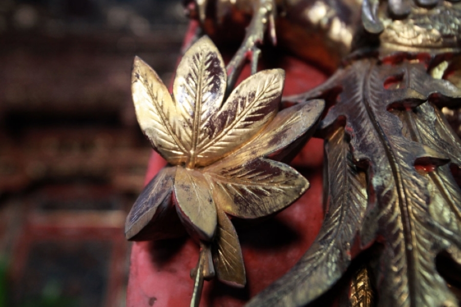 Bàn thờ đặt trang trọng giữa nhà với hoa văn chạm trổ tỉ mỉ, sơn son thiếp vàng.