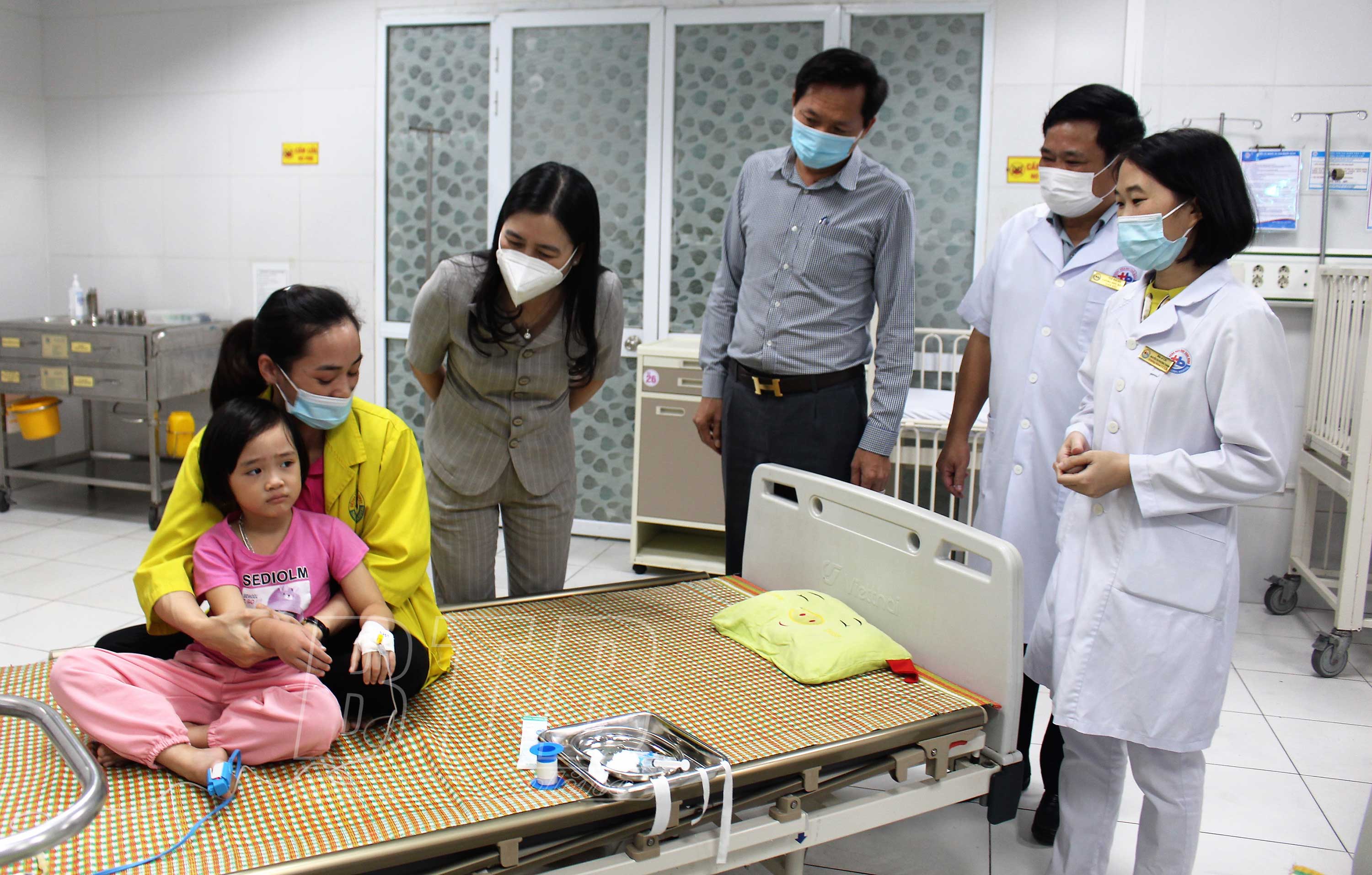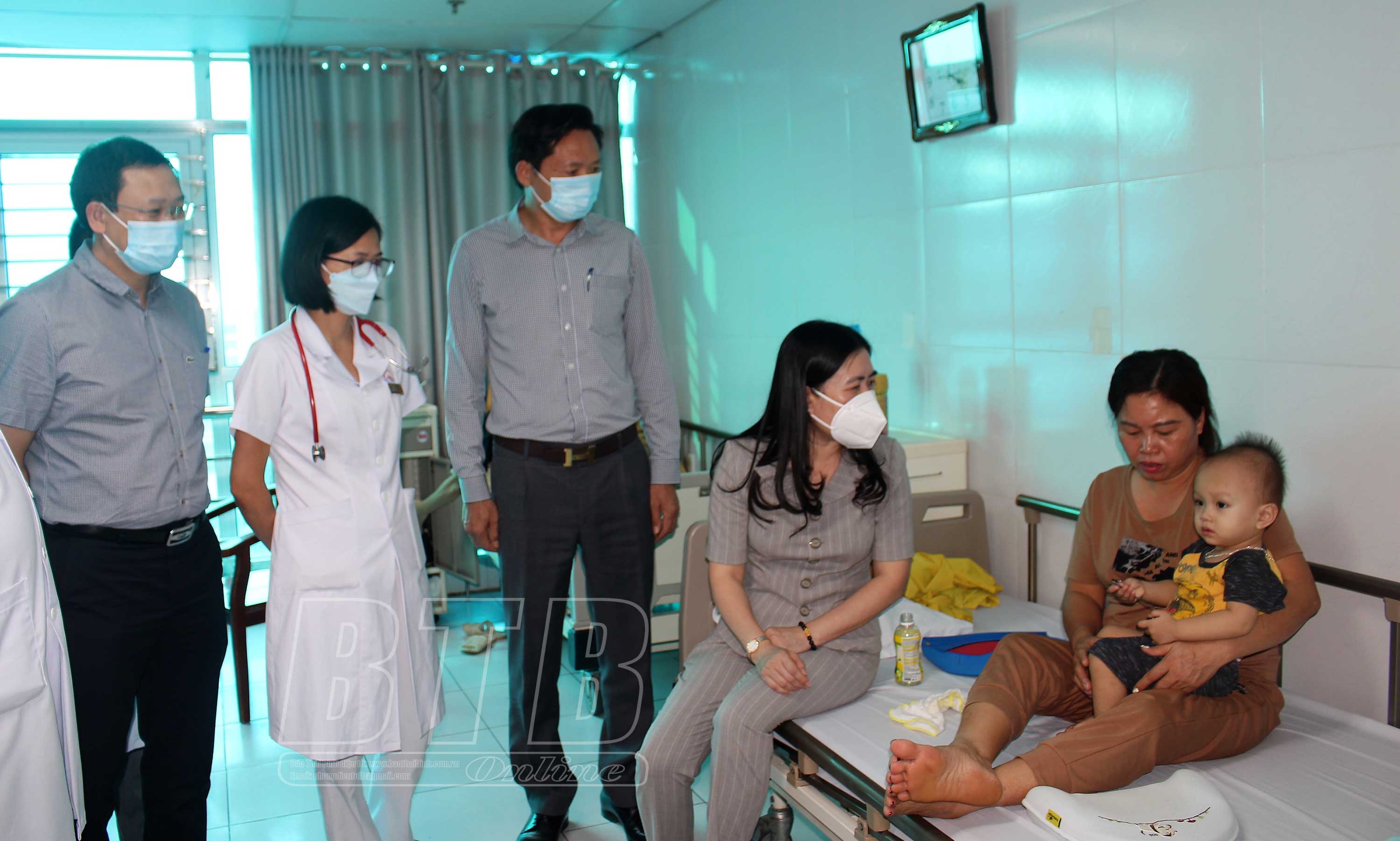 Đồng chí Trần Thị Bích Hằng, Tỉnh uỷ viên, Phó Chủ tịch UBND tỉnh thăm hỏi, động viên bệnh nhân đang điều trị tại Bệnh viện Nhi Thái Bình.