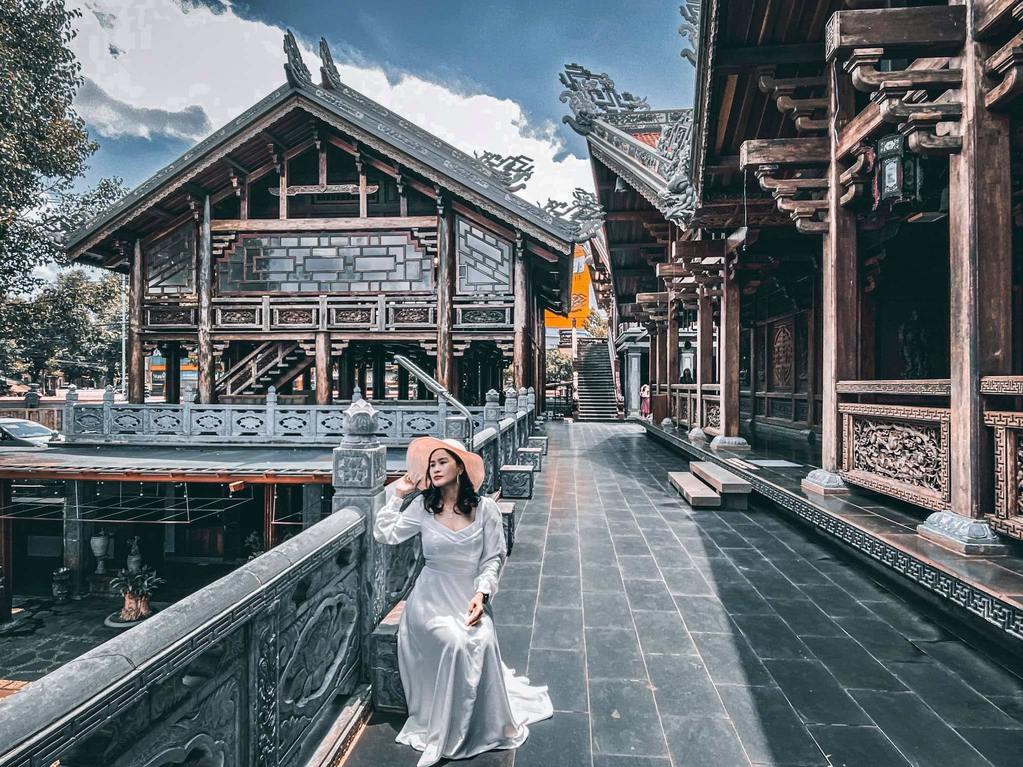 Chính vì sở hữu nét độc đáo trong thiết kế mà nhiều bạn trẻ thời gian qua đã cho ra đời nhiều bức ảnh "sống ảo" cực đẹp khi đến check in chùa Khải Đoan.