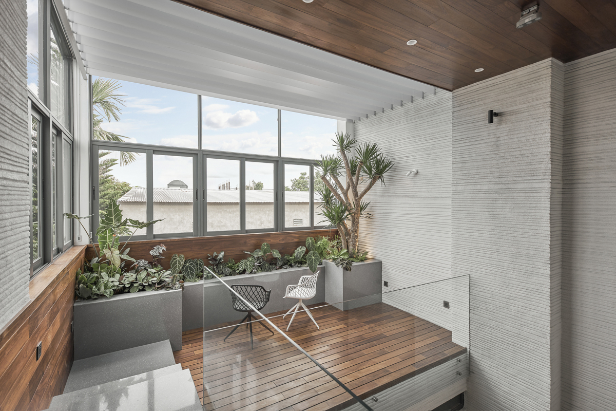 Tầng ba sau nhà được bố trí góc nghỉ ngơi, thư giãn có tầm nhìn thoáng đãng, nơi mọi người có thể ngồi thư giãn, trò chuyện.