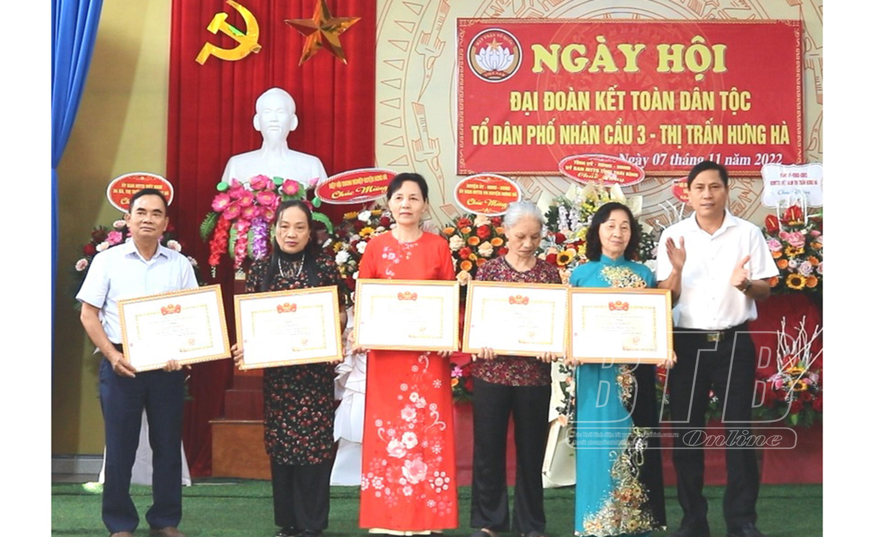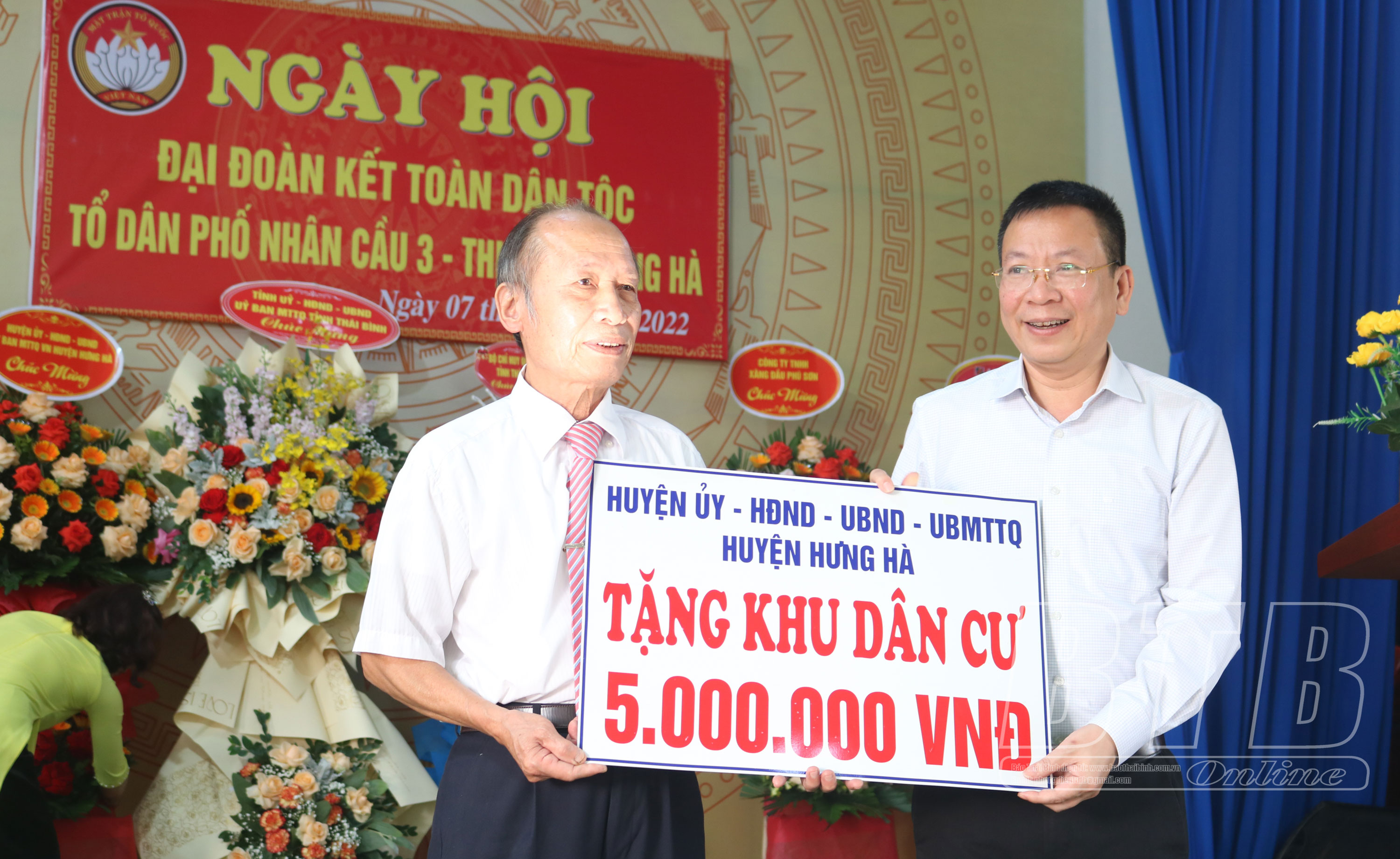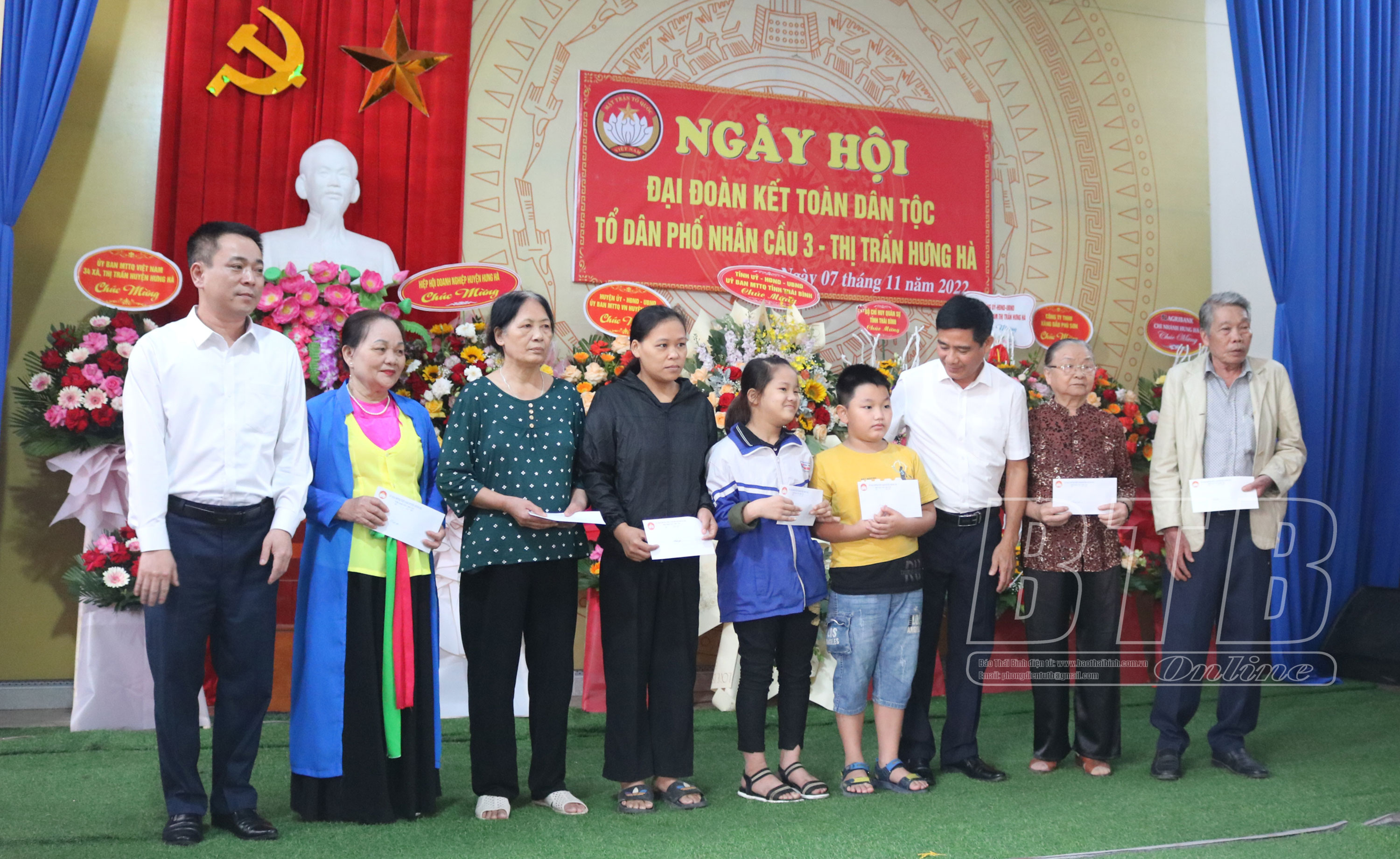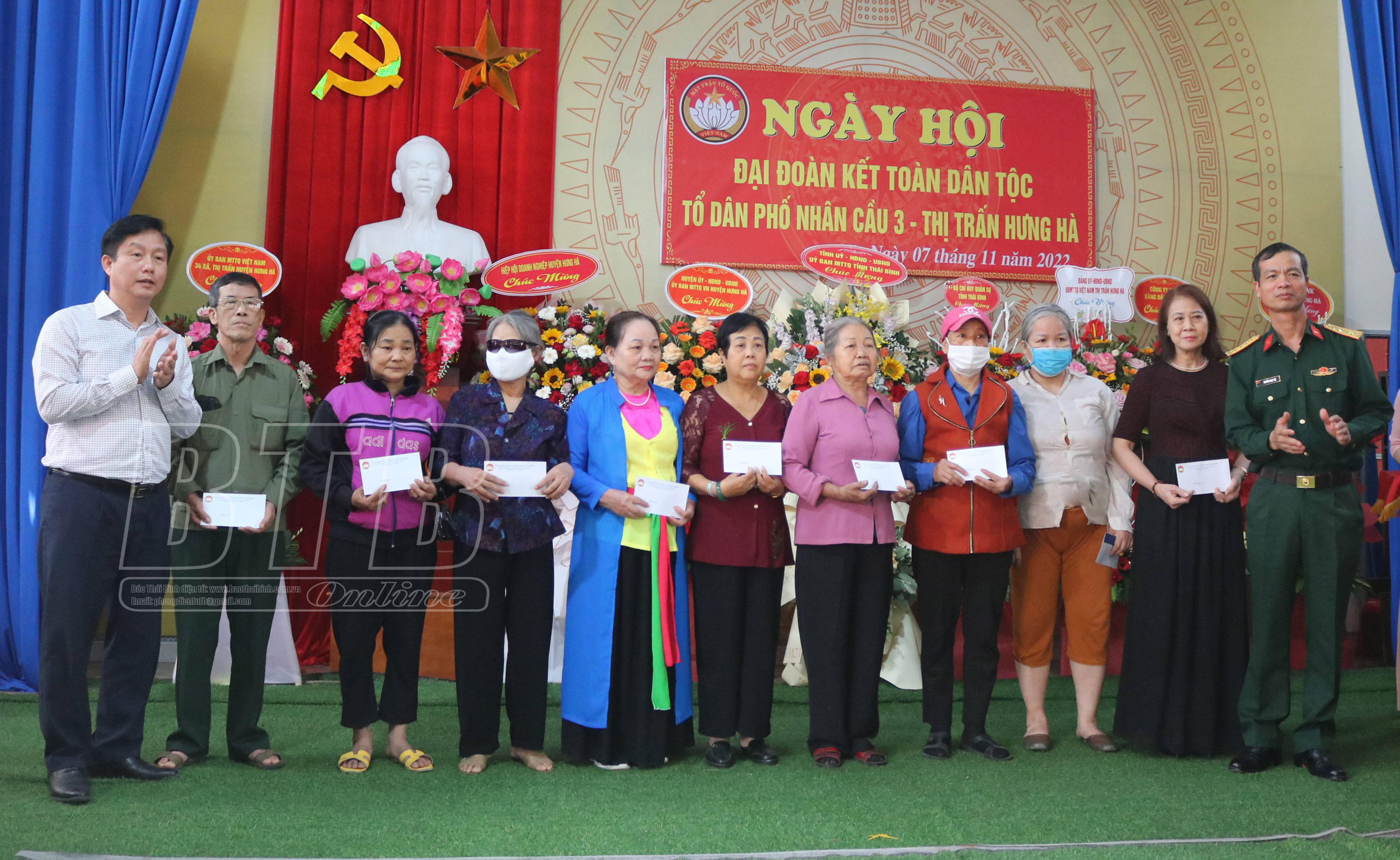 Tại ngày hội, các đồng chí lãnh đạo tỉnh, huyện Hưng Hà đã trao quà cho hộ cận nghèo, các gia đình chính sách, người có công trong tổ dân phố Nhân Cầu 3.