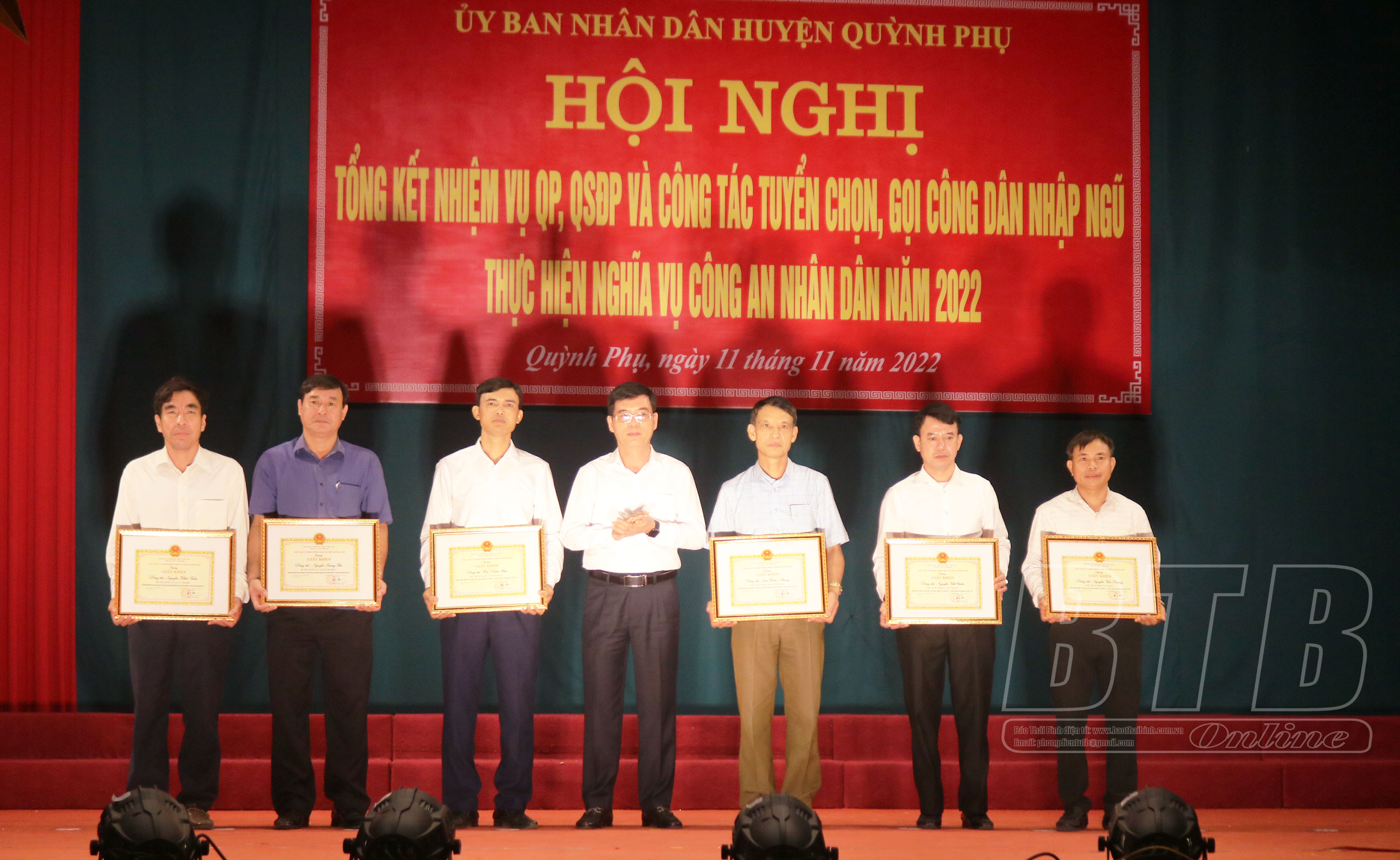 Tại hội nghị, 24 tập thể, 19 cá nhân có thành tích xuất sắc trong thực hiện nhiệm vụ quốc phòng, quân sự địa phương và công tác tuyển chọn, gọi công dân nhập ngũ, thực hiện nghĩa vụ Công an nhân dân năm 2022 được UBND huyện Quỳnh Phụ tuyên dương, khen thưởng.