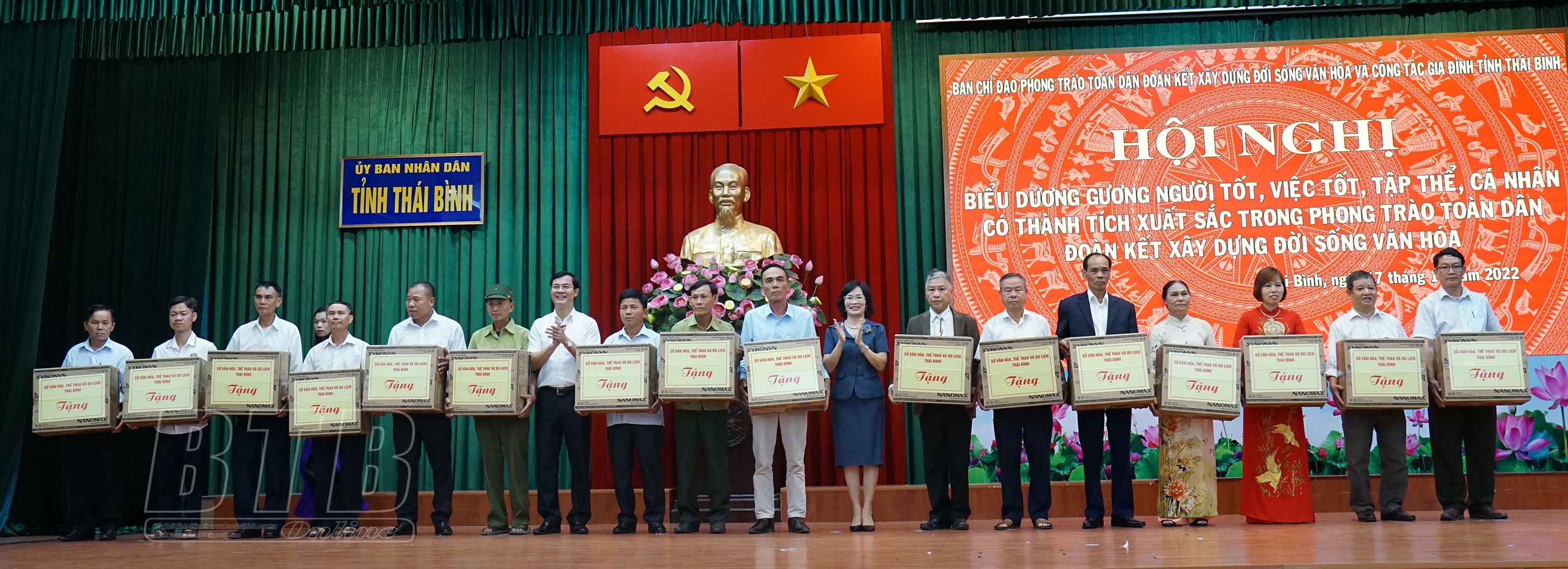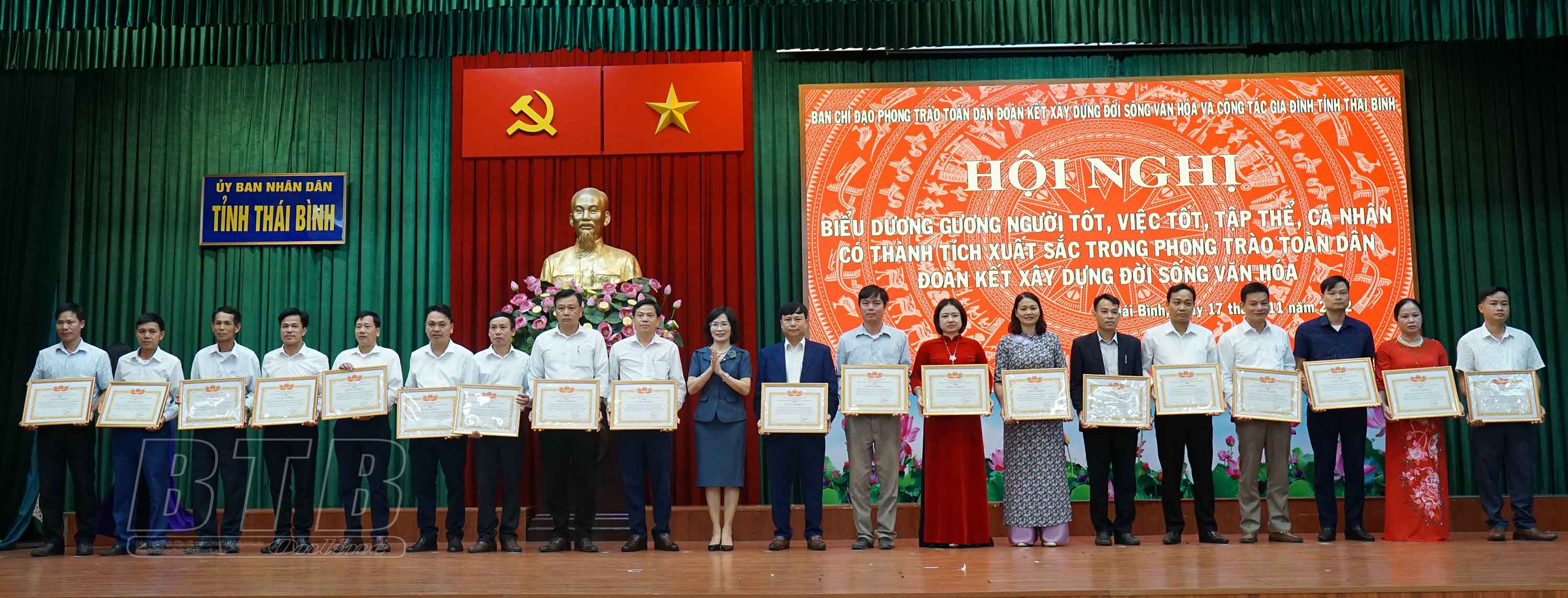 Nhân dịp này, 122 tập thể, cá nhân có thành tích tiêu biểu, xuất sắc trong tổ chức thực hiện phong trào “Toàn dân đoàn kết xây dựng đời sống văn hóa” trên địa bàn tỉnh đã được trao tặng bằng khen của Chủ tịch UBND tỉnh, giấy khen và thiết bị âm thanh của Sở Văn hóa, Thể thao và Du lịch.