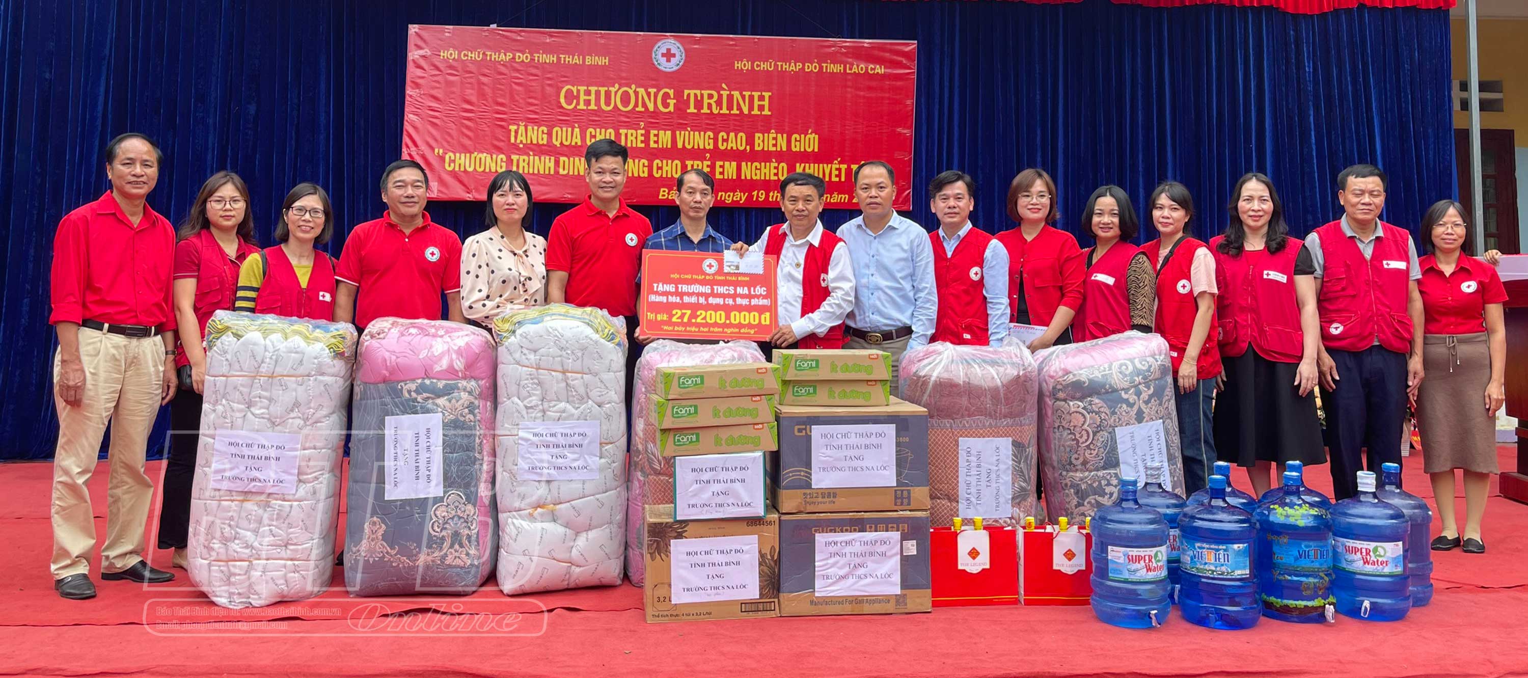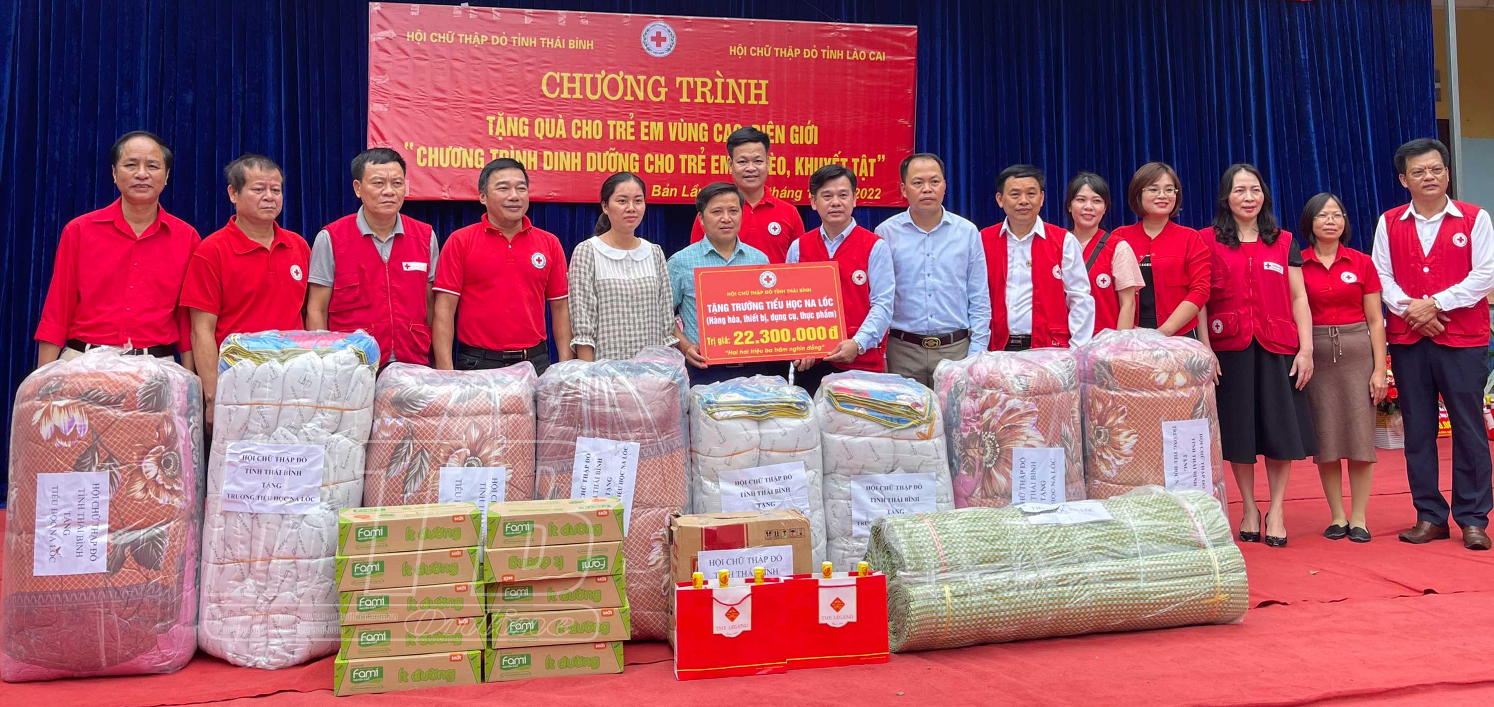 Thực hiện chương trình “Dinh dưỡng cho trẻ em nghèo, khuyết tật”, sáng ngày 19/11, đoàn công tác của Hội Chữ thập đỏ (CTĐ) tỉnh Thái Bình đã đến thăm và tặng quà cho học sinh khó khăn vùng cao của tỉnh Lào Cai gồm: Trường Mầm non, Trường Tiểu học và Trường THCS Na Lốc, huyện Mường Khương.