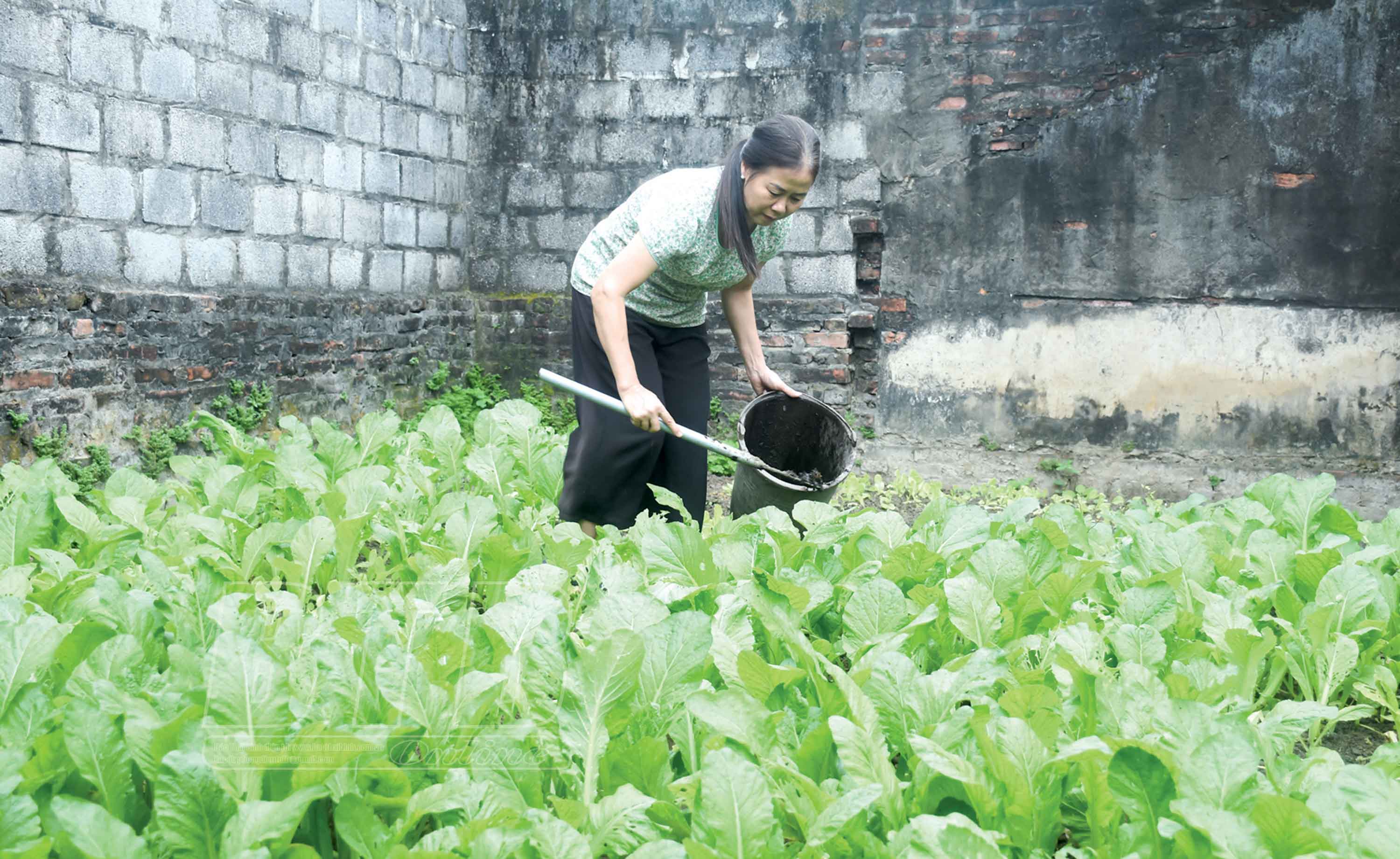 Bà Nguyễn Thị Thoa, xã Minh Quang (Vũ Thư) tận dụng rác thải sinh hoạt để làm phân hữu cơ, bón lót cho cây trồng.