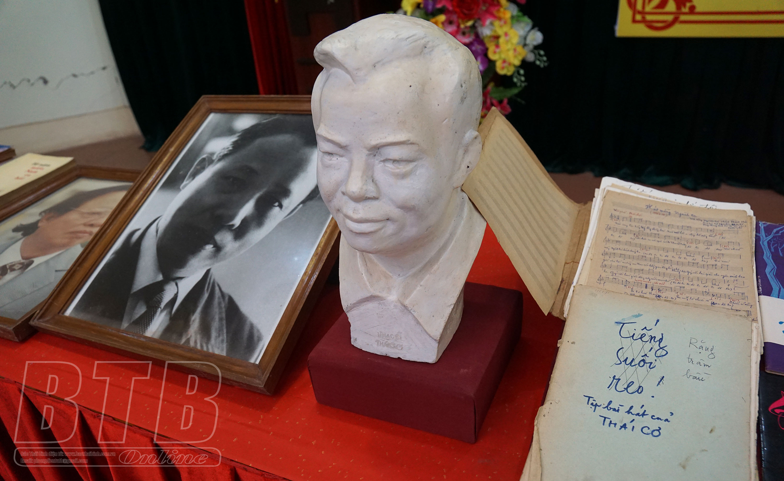 Hơn 200 tài liệu, hiện vật của cố nhạc sĩ Thái Cơ bao gồm: các bản nhạc viết tay, đánh máy, băng casette; các giải thưởng nhà nước về lĩnh vực âm nhạc; huân, huy chương các loại; tượng, ảnh chân dung cố nhạc sĩ; đồ dùng phục vụ sáng tác, biểu diễn đã theo chân cố nhạc sĩ trên các chiến trường chống Mỹ...
